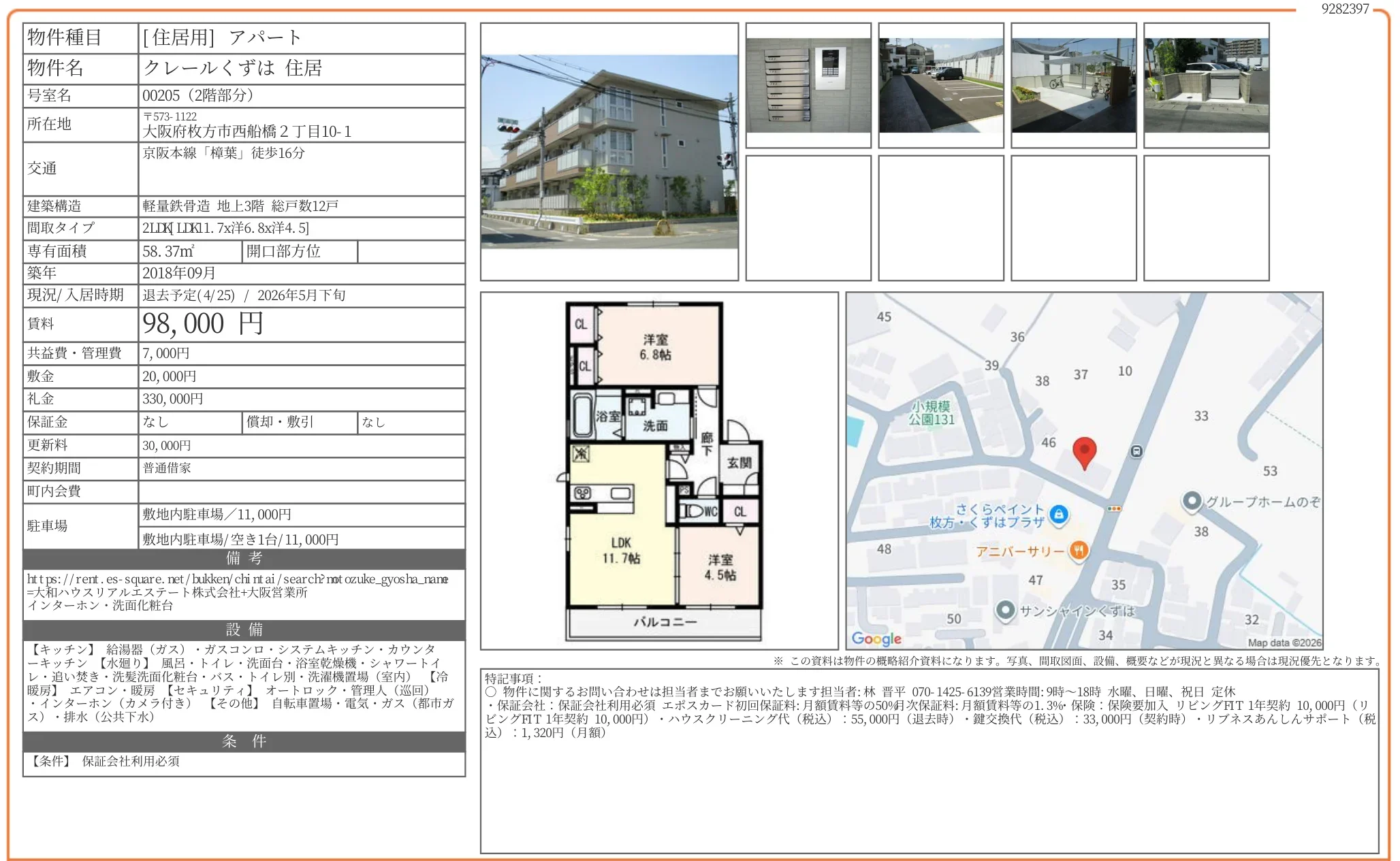 | アクセス | 樟葉 (徒歩16分) |