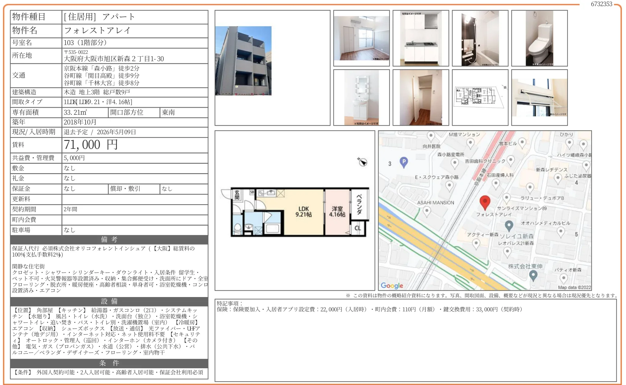 〒535-0022, 大阪府大阪市旭区新森4丁目20-16