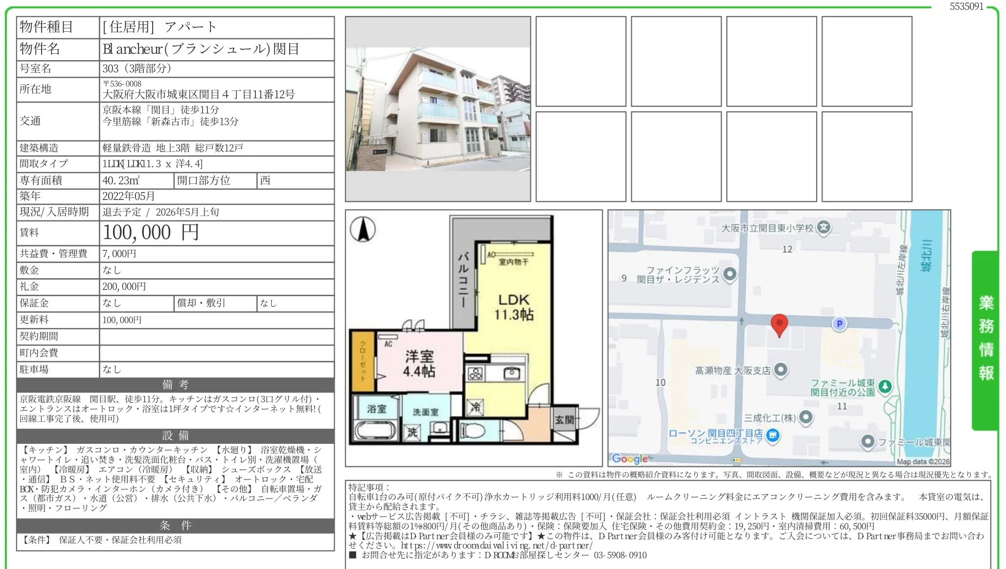| アクセス | 関目 (徒歩11分) 新森古市 (徒歩13分) |