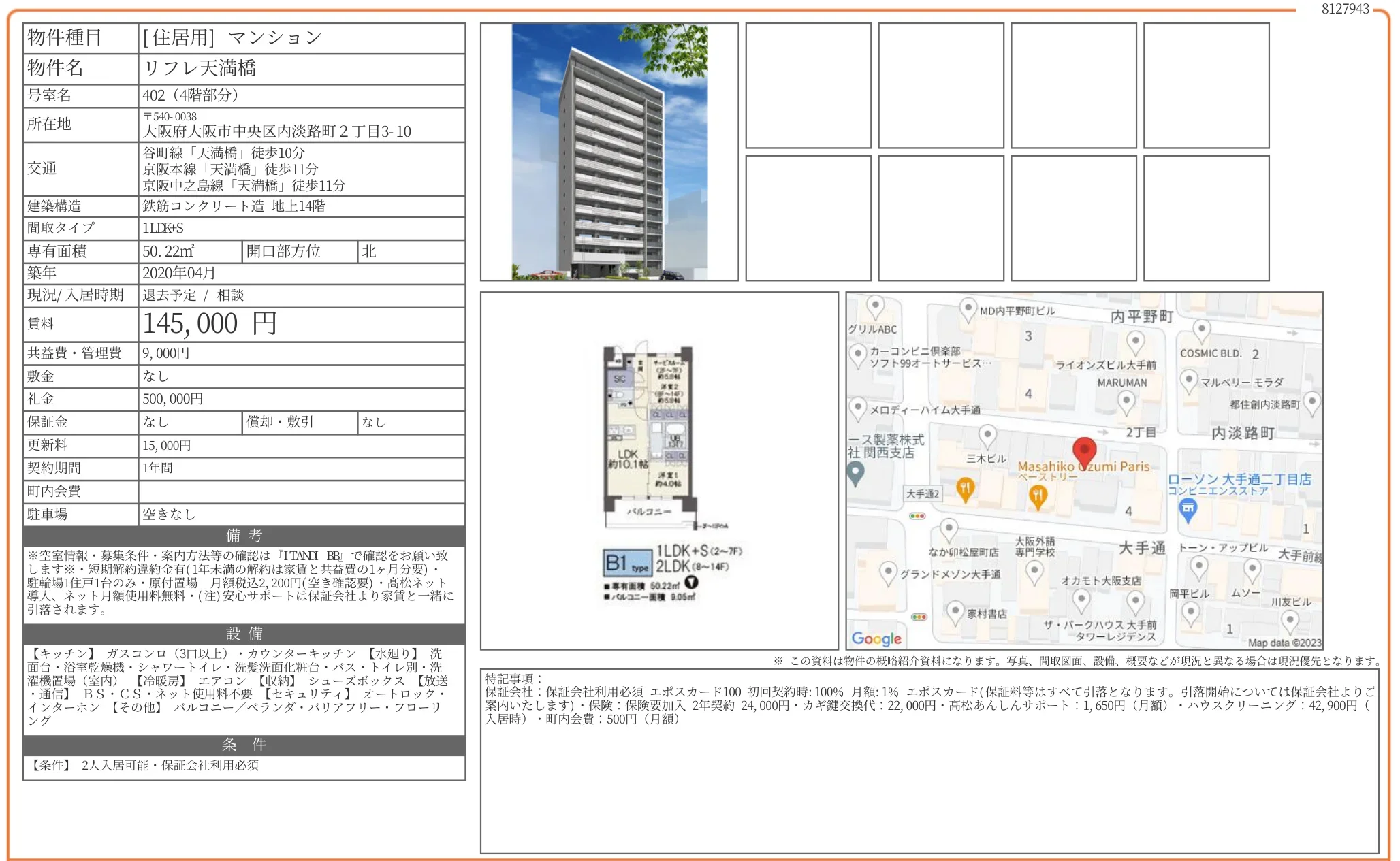 | アクセス | 天満橋 (徒歩10分) 天満橋 (徒歩11分) 天満橋 (徒歩11分) |