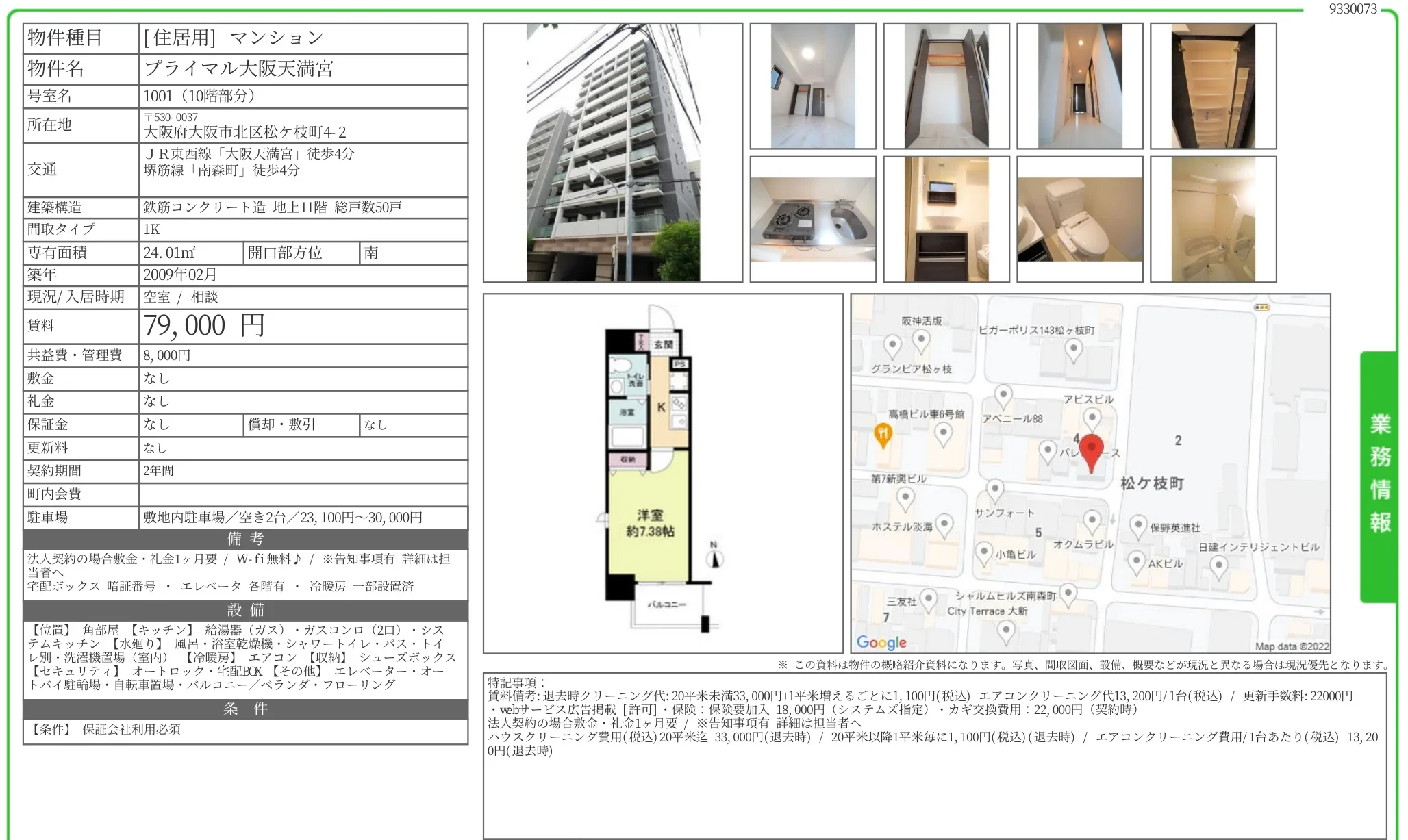 | 建物名 | プライマル大阪天満宮 10階1001号室 |