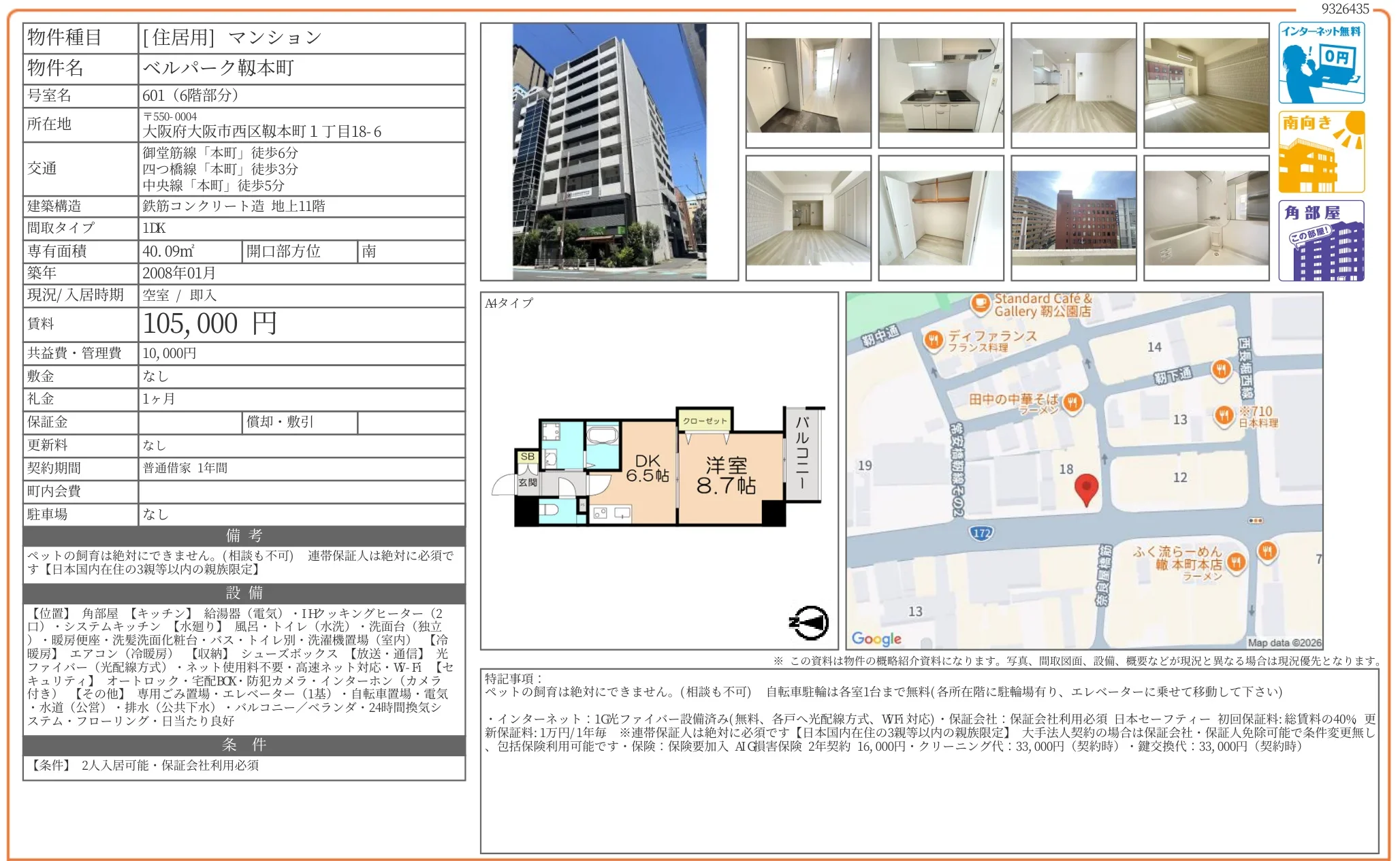 | 物件名 | ベルパーク靱本町 601 |