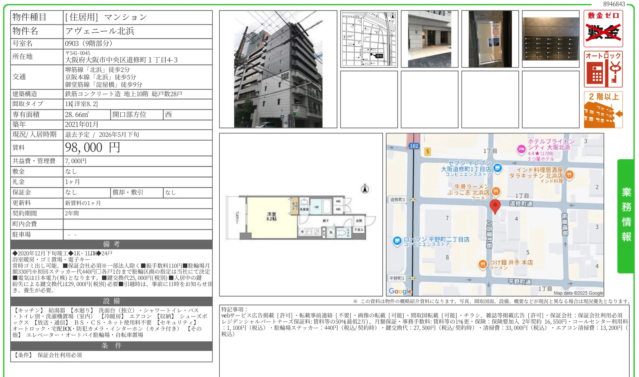 | 物件名 | アヴェニール北浜 0903 |