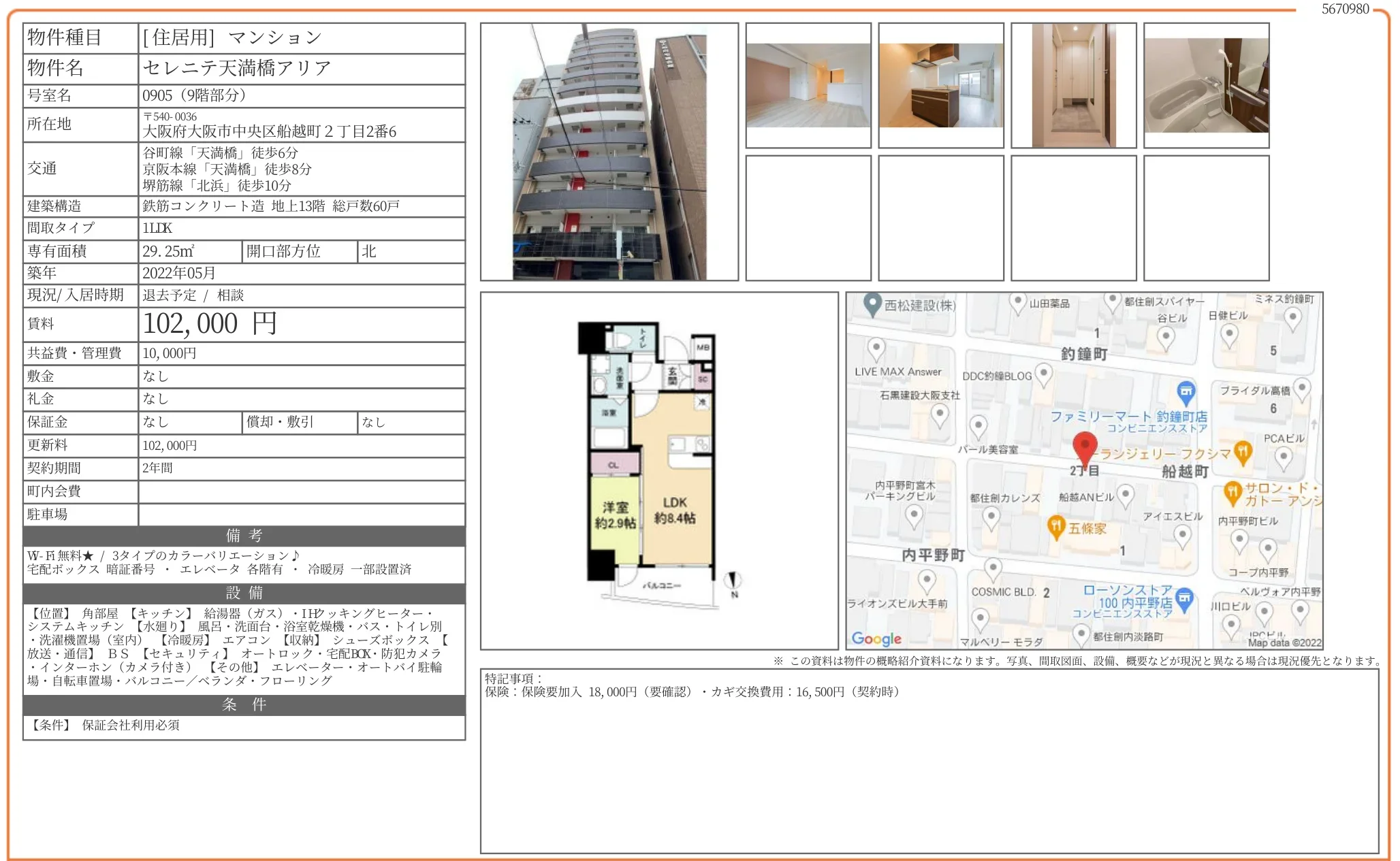 | 物件名 | セレニテ天満橋アリア 0905号 |