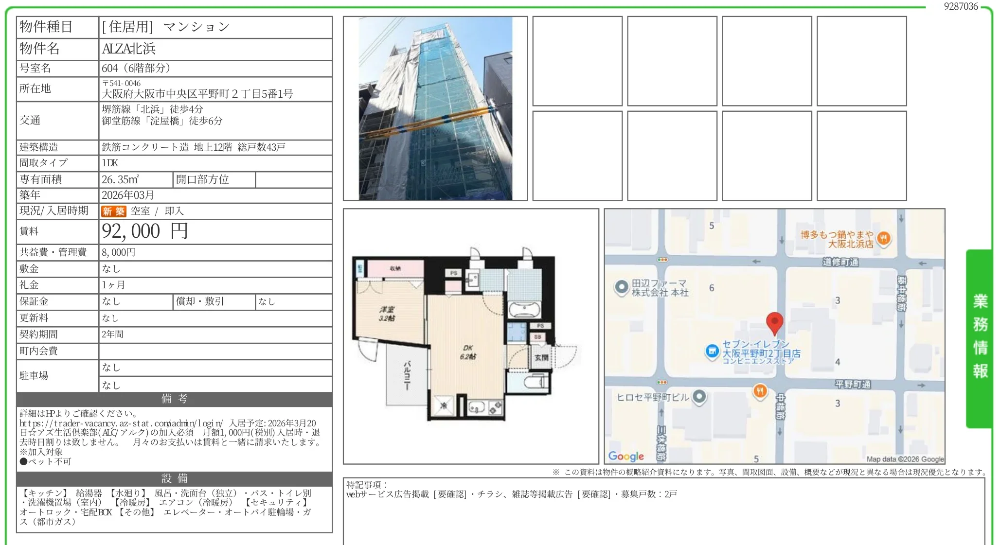 | 物件名 | ALZA北浜 604号 |