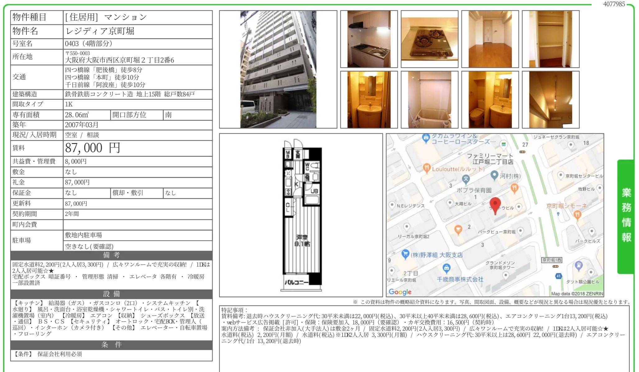 | 物件名 | レジディア京町堀 0403 |