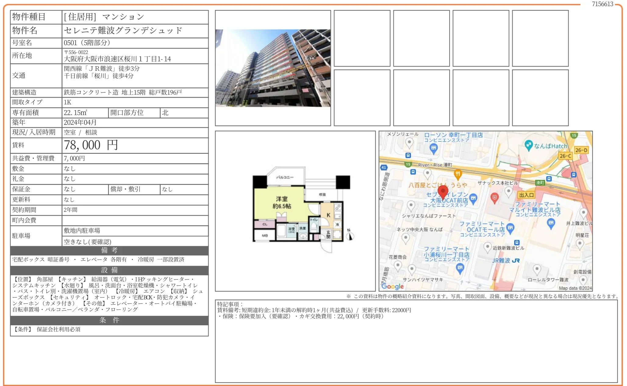 | 物件名 | セレニテ難波グランデシュッド 0501 |