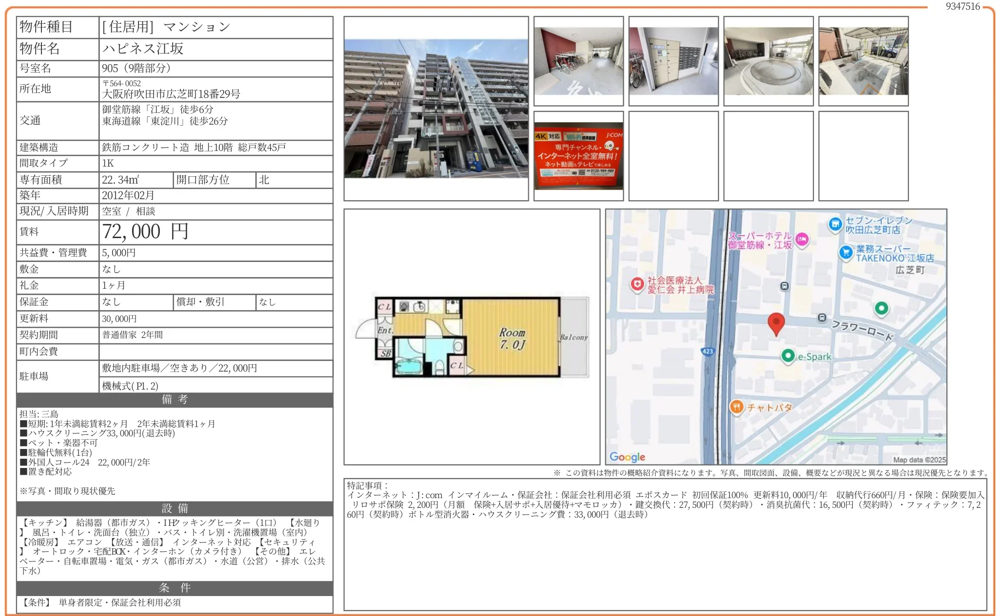 | 物件名 | ハピネス江坂 905 |