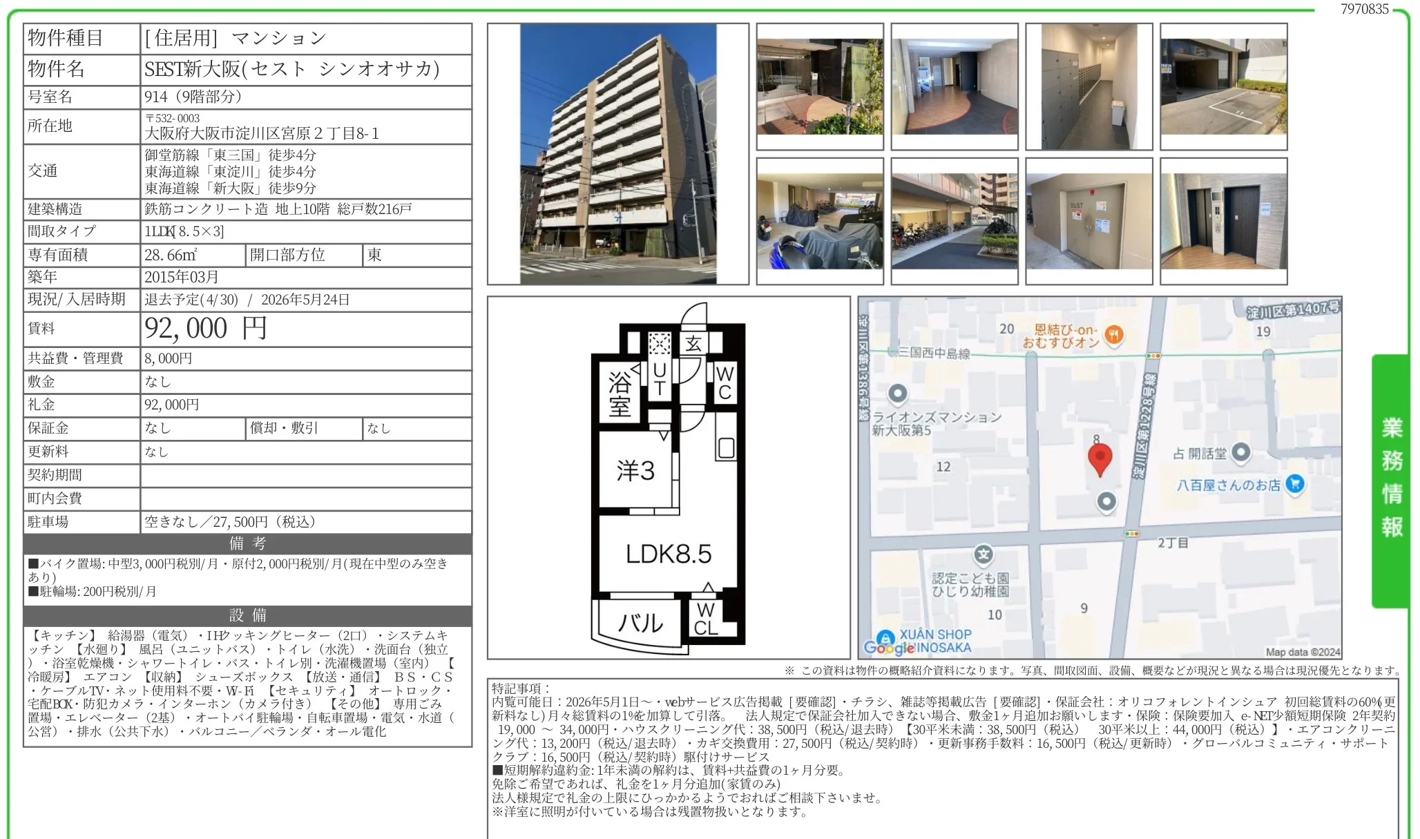 | アクセス | 東三国 (徒歩4分) 東淀川 (徒歩4分) 新大阪 (徒歩9分) |