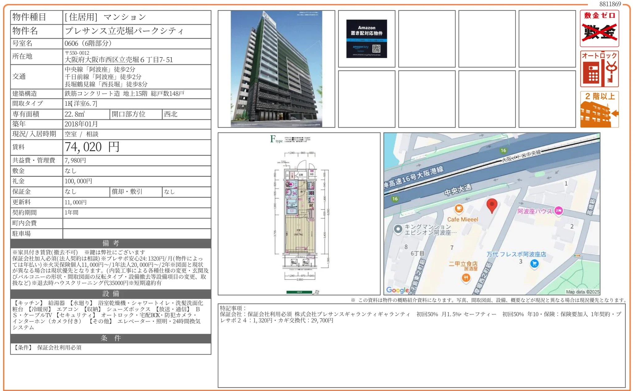 | 物件名 | プレサンス立売堀パークシティ 606 |
