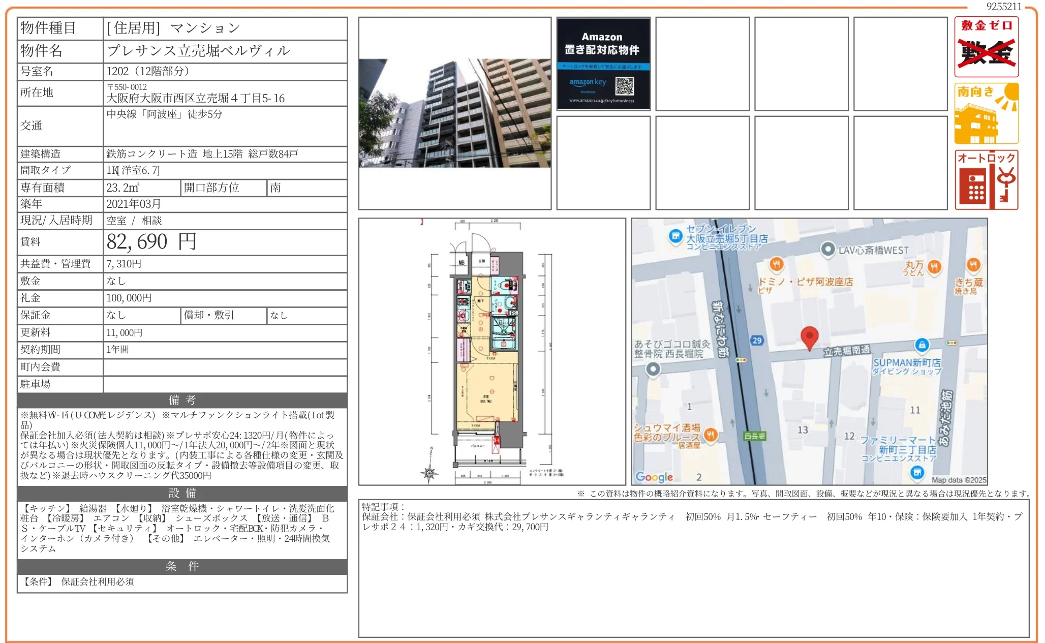| 建物名 | プレサンス立売堀ベルヴィル |