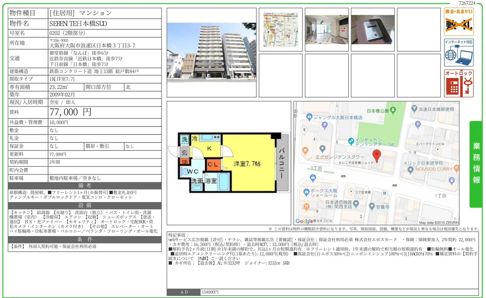 | 賃料 | 7.7万円 |