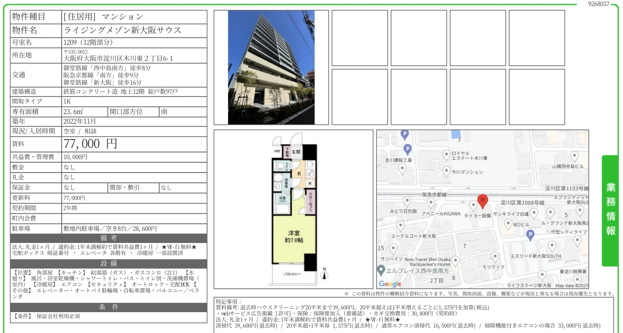 | アクセス | 西中島南方 (徒歩8分) 南方 (徒歩9分) 新大阪 (徒歩16分) |