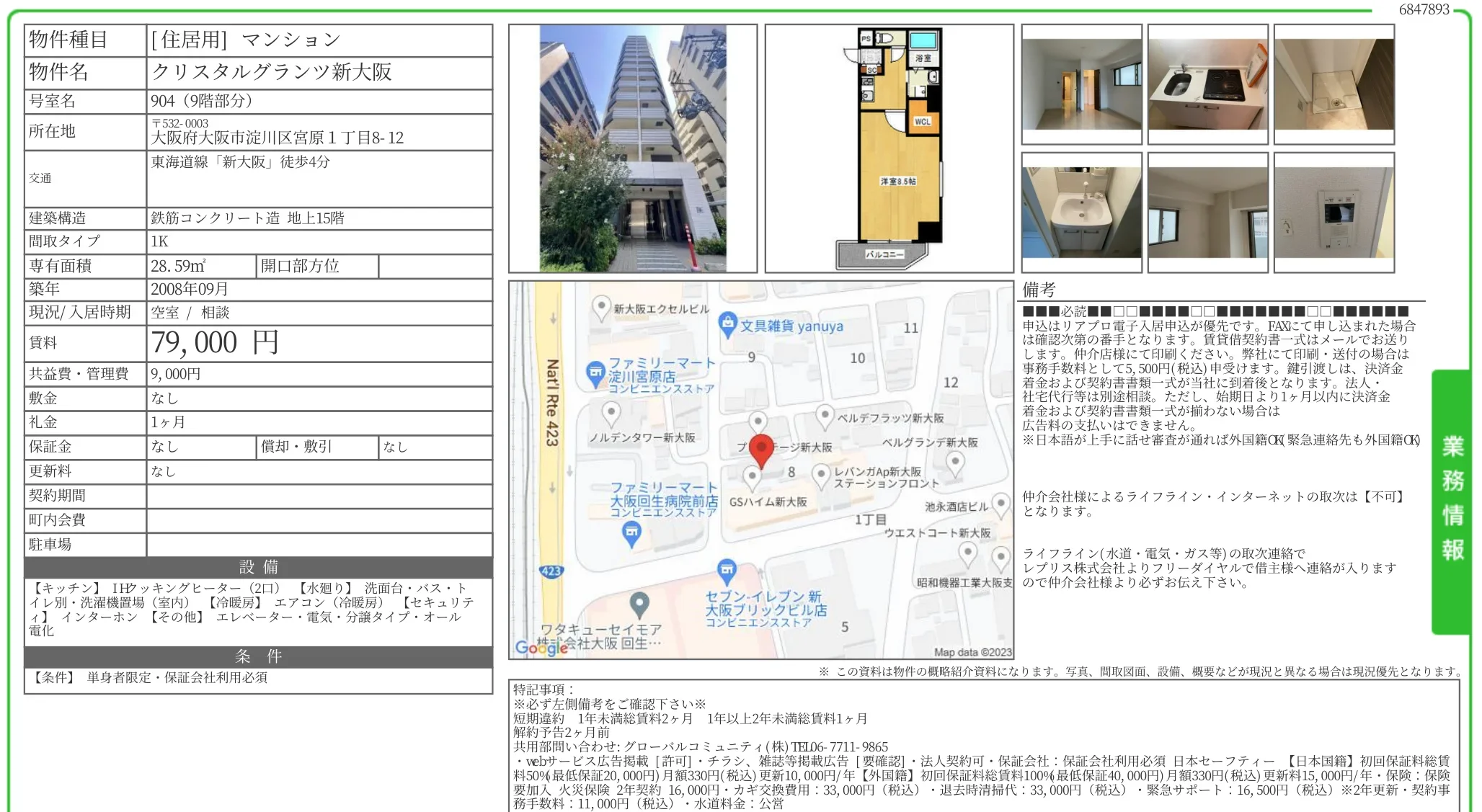 | 物件名 | クリスタルグランツ新大阪 904 |