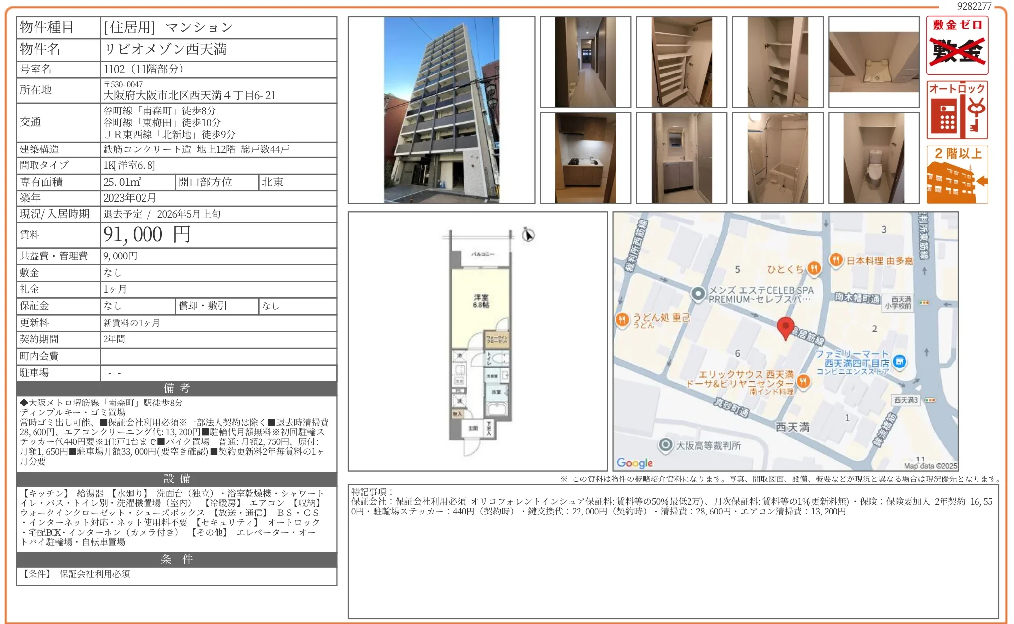 | 賃料 | 9.1万円 |