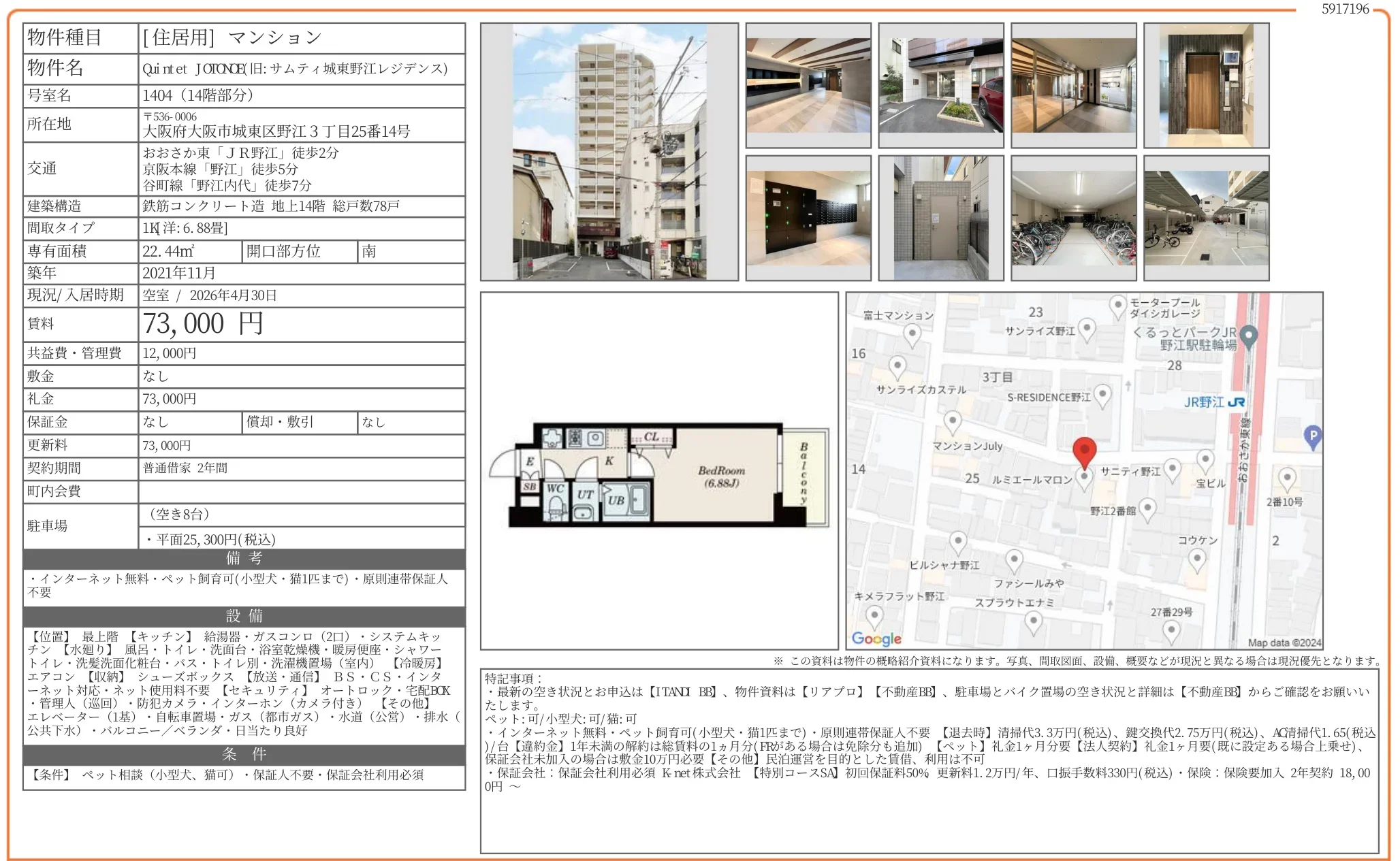 | 礼金 | 73000 |