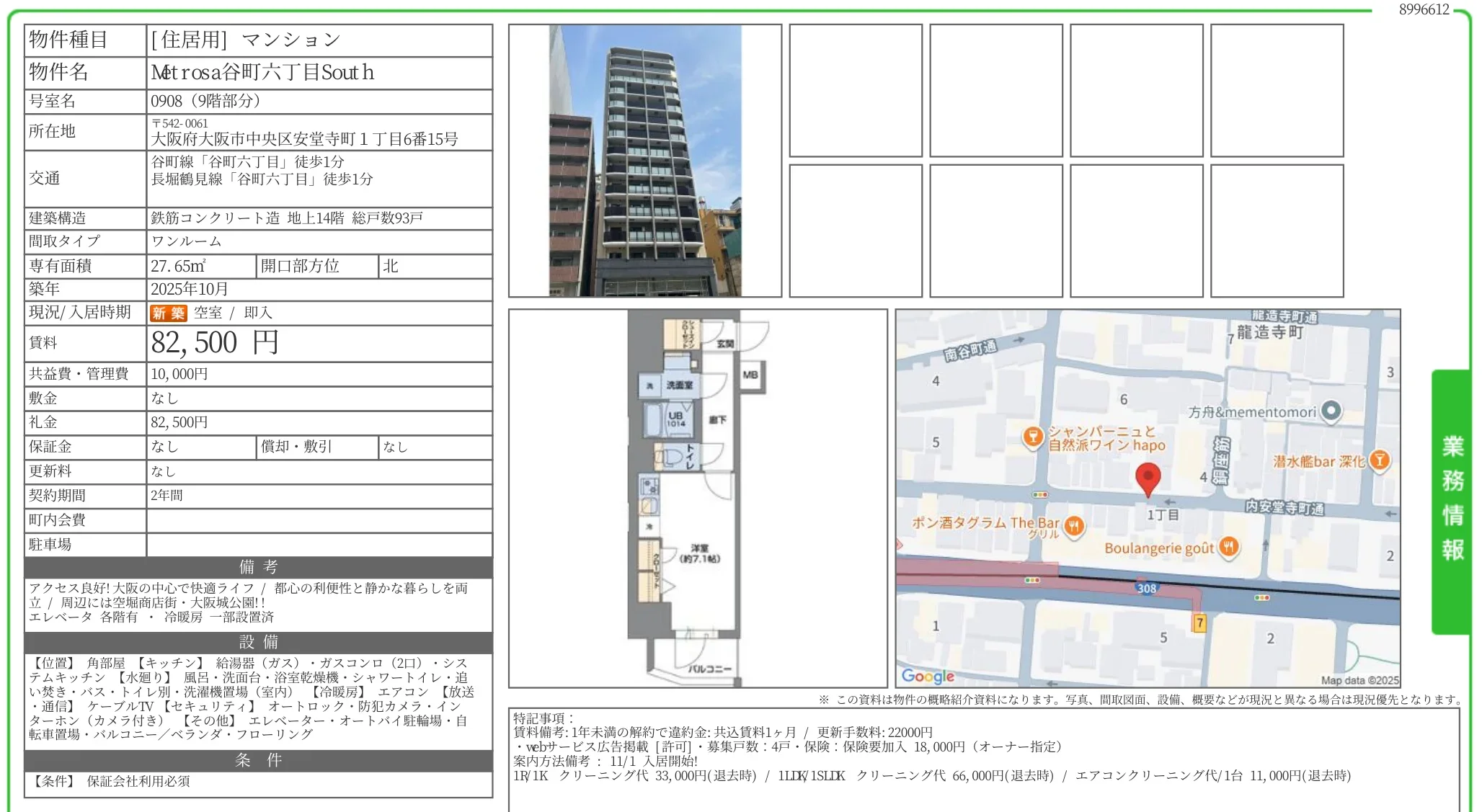 物件名Metrosa谷町六丁目 South 0908