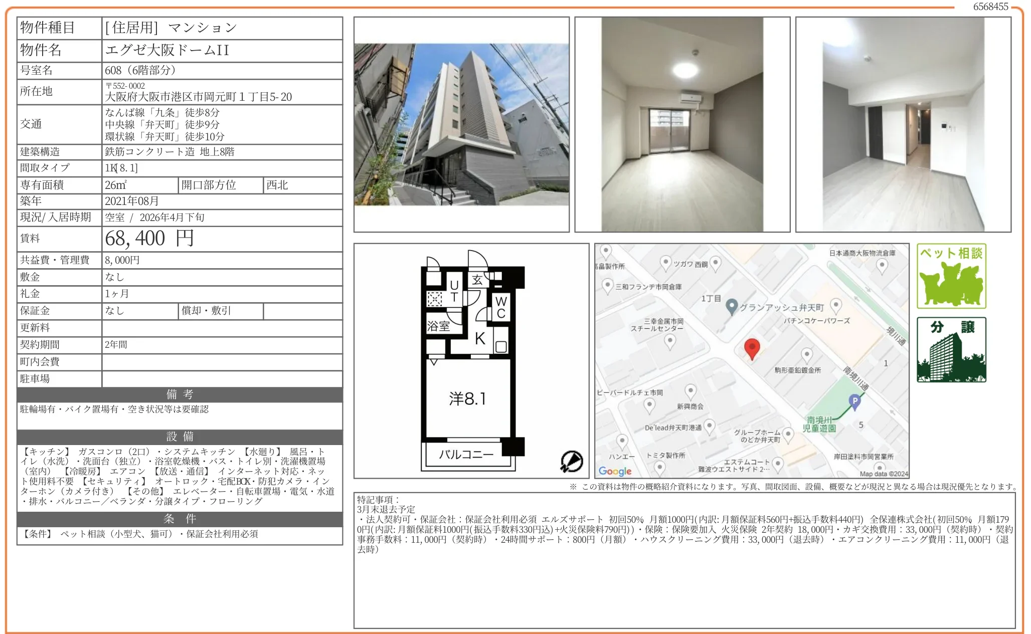 | アクセス | 九条 (徒歩8分) 弁天町 (徒歩9分) 弁天町 (徒歩10分) |