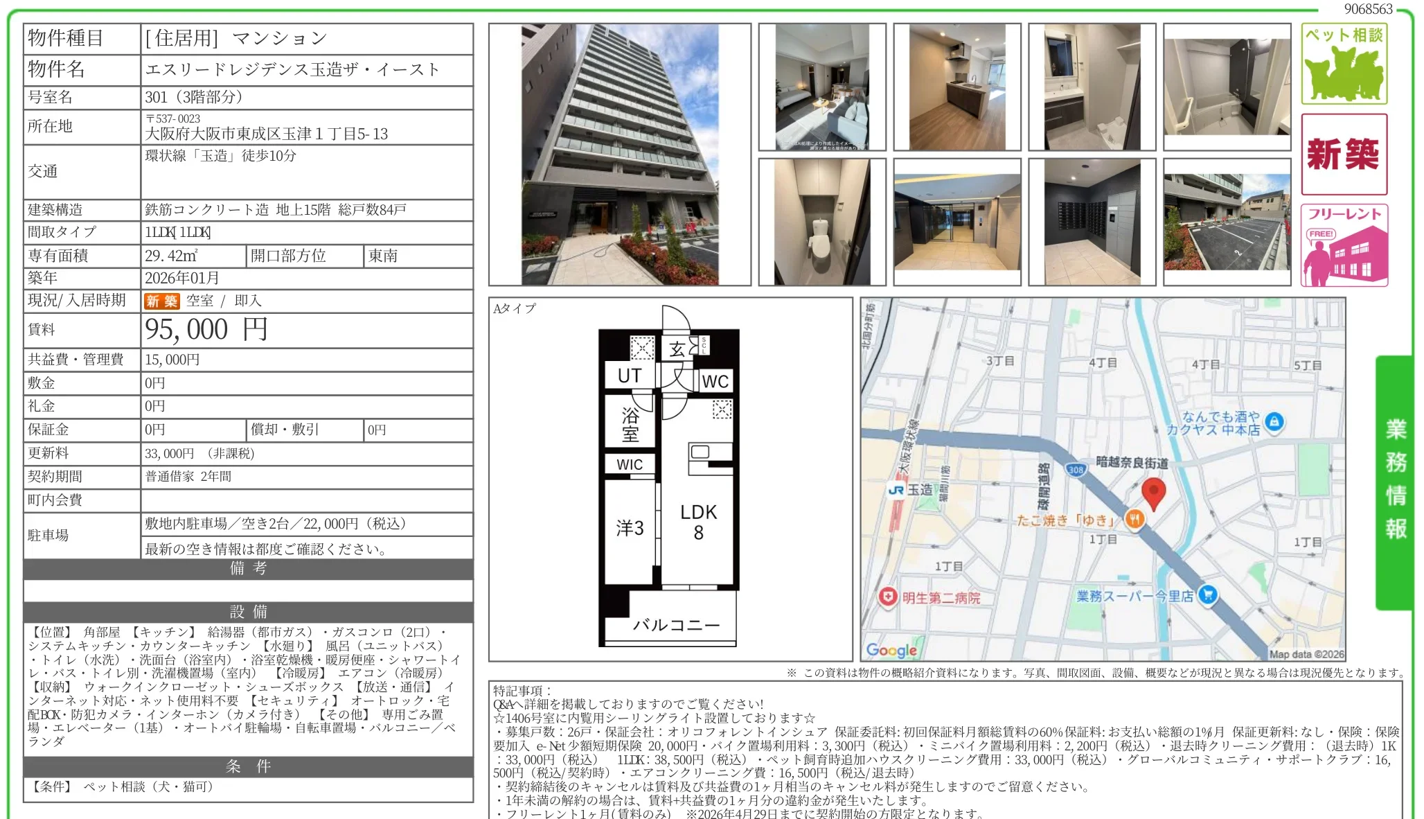 | 物件名 | エスリードレジデンス玉造ザイースト 301 |