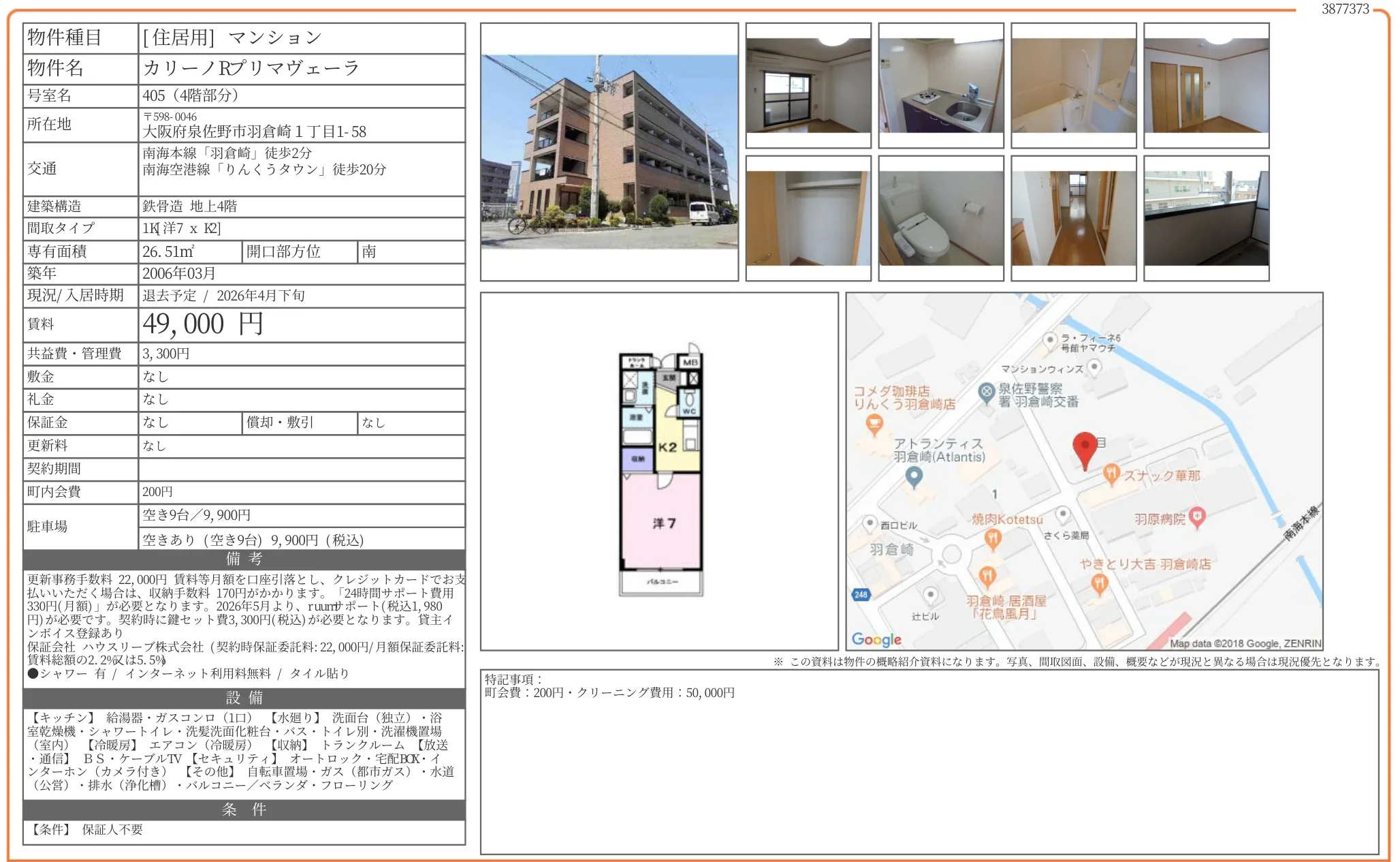 | アクセス | 羽倉崎 (徒歩2分) りんくうタウン (徒歩20分) |