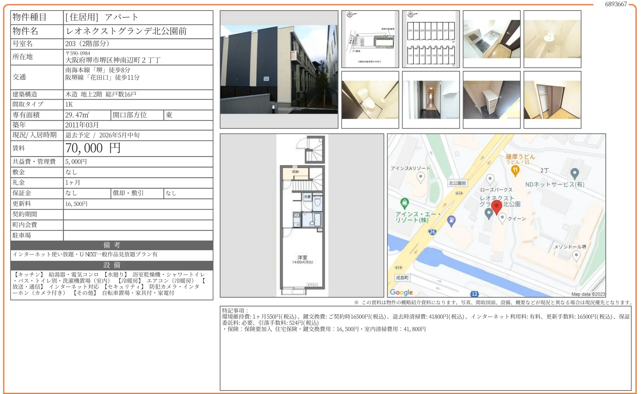 | 部屋番号 | 203号 |