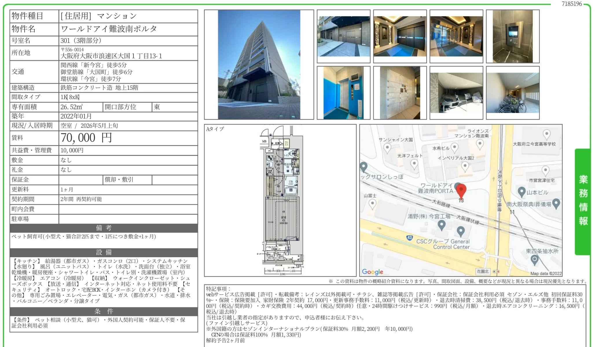 | 物件名 | ワールドアイ難波南ポルタ 301号 |