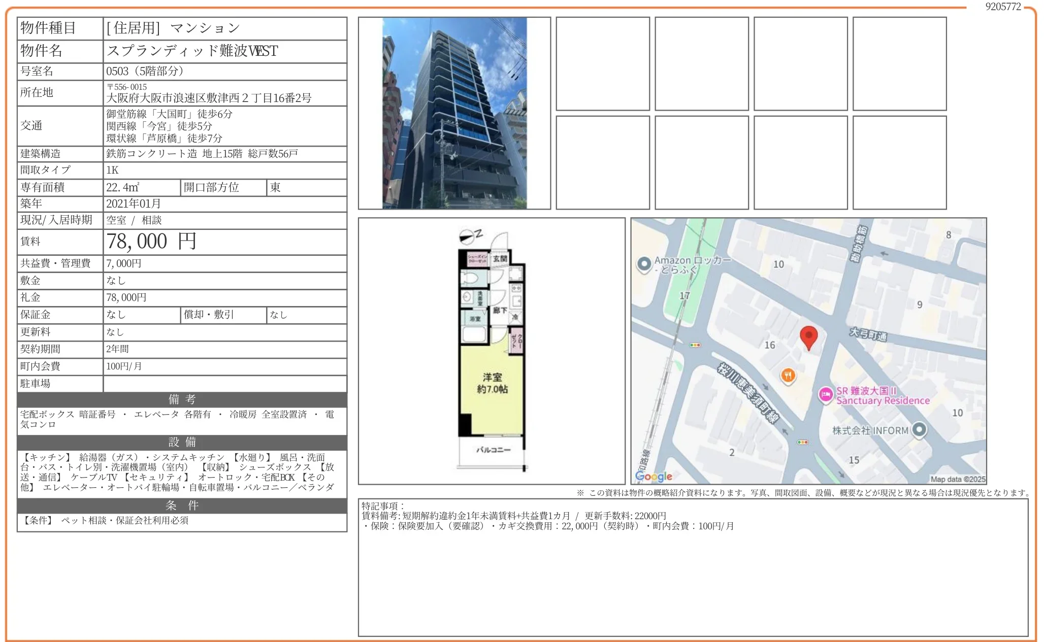 | 物件名 | スプランディッド難波VEST 0503 |