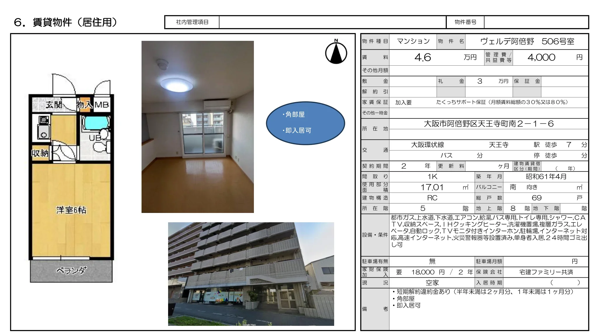 | 部屋番号 | 506号 |