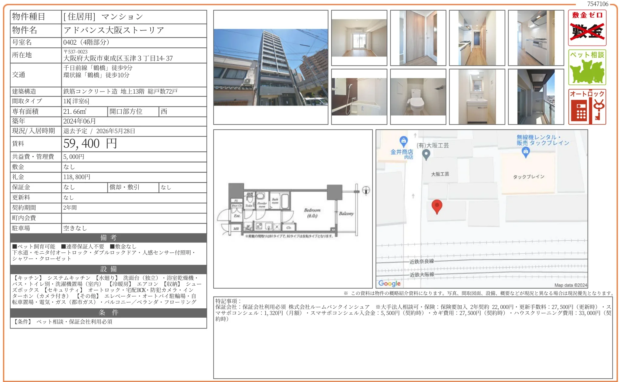| 物件名 | アドバンス大阪ストーリア 0402 |