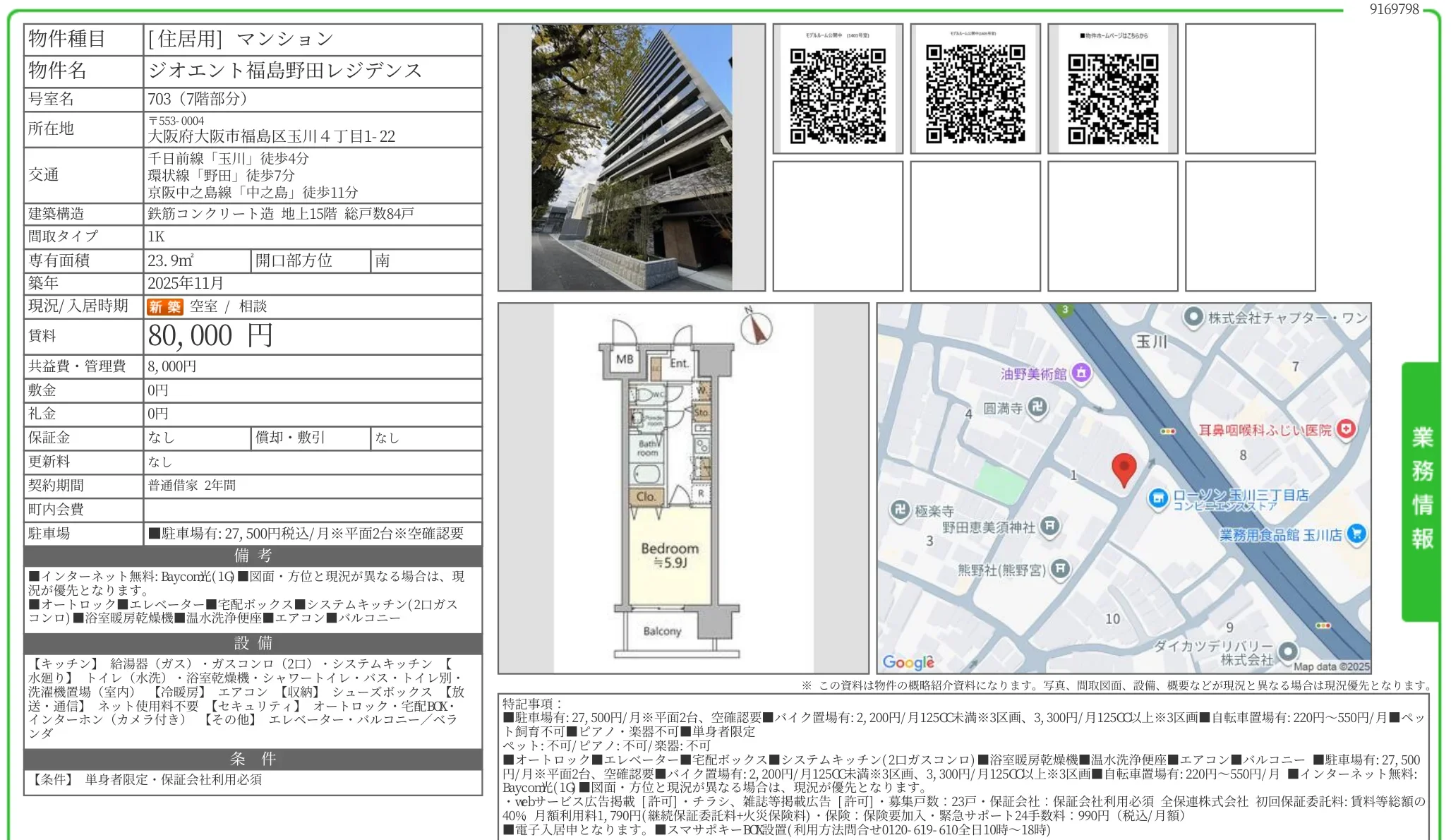 | 物件名 | ジオエント福島野田レジデンス 703号 |
