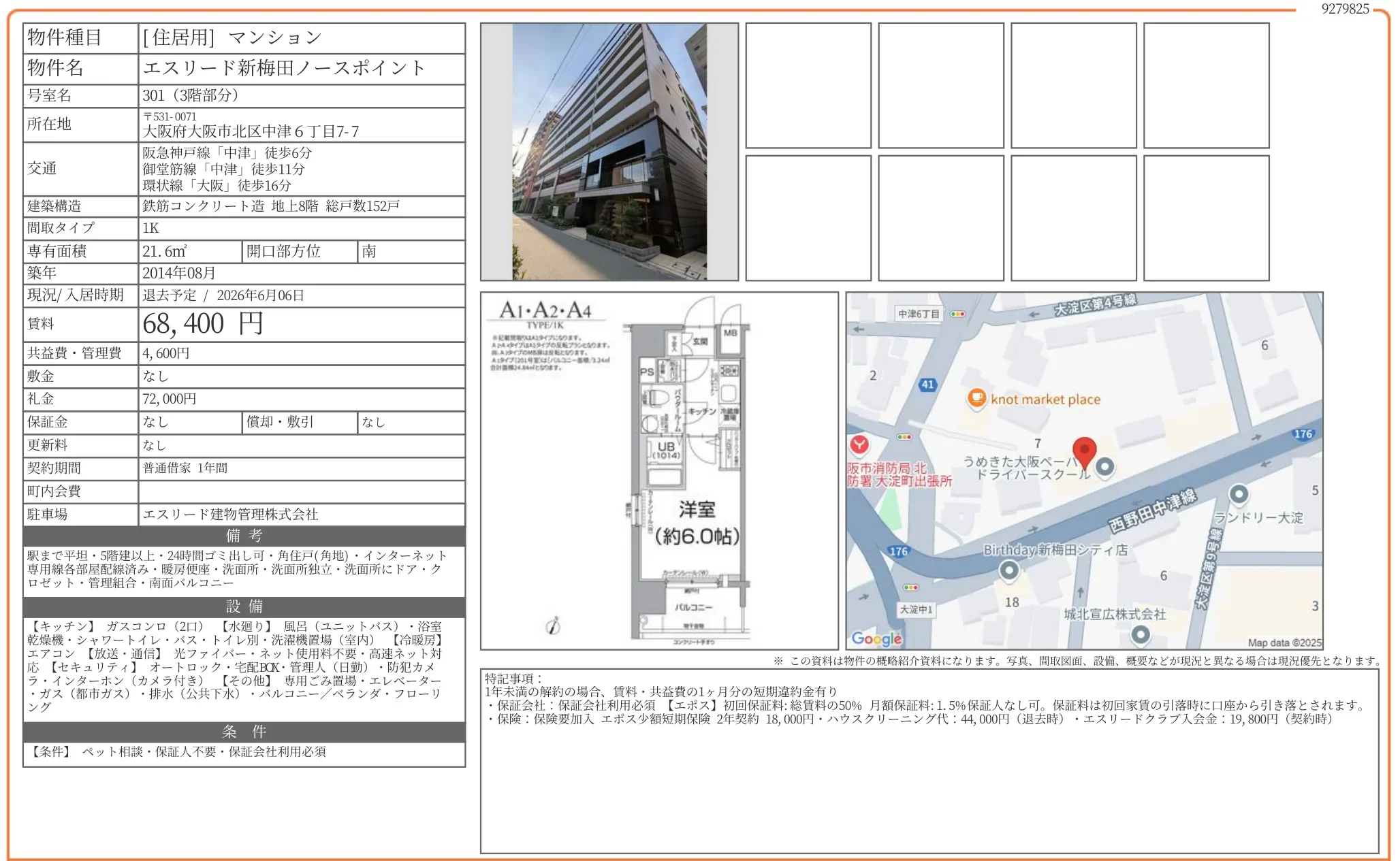 | 物件名 | エスリード新梅田ノースポイント 301号 |