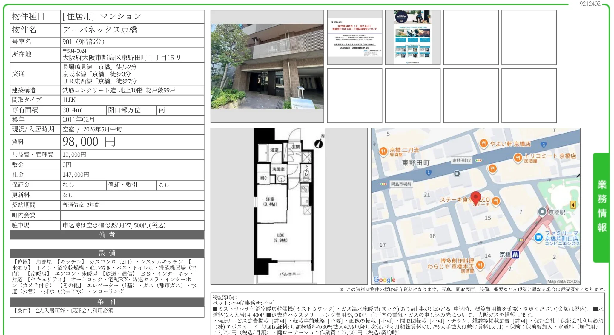 | 物件名 | アーバネックス京橋 901 |