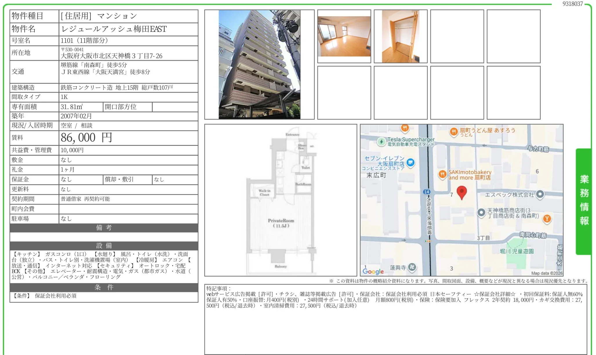 | 物件名 | レジュールアッシュ梅田EAST 1101号 |