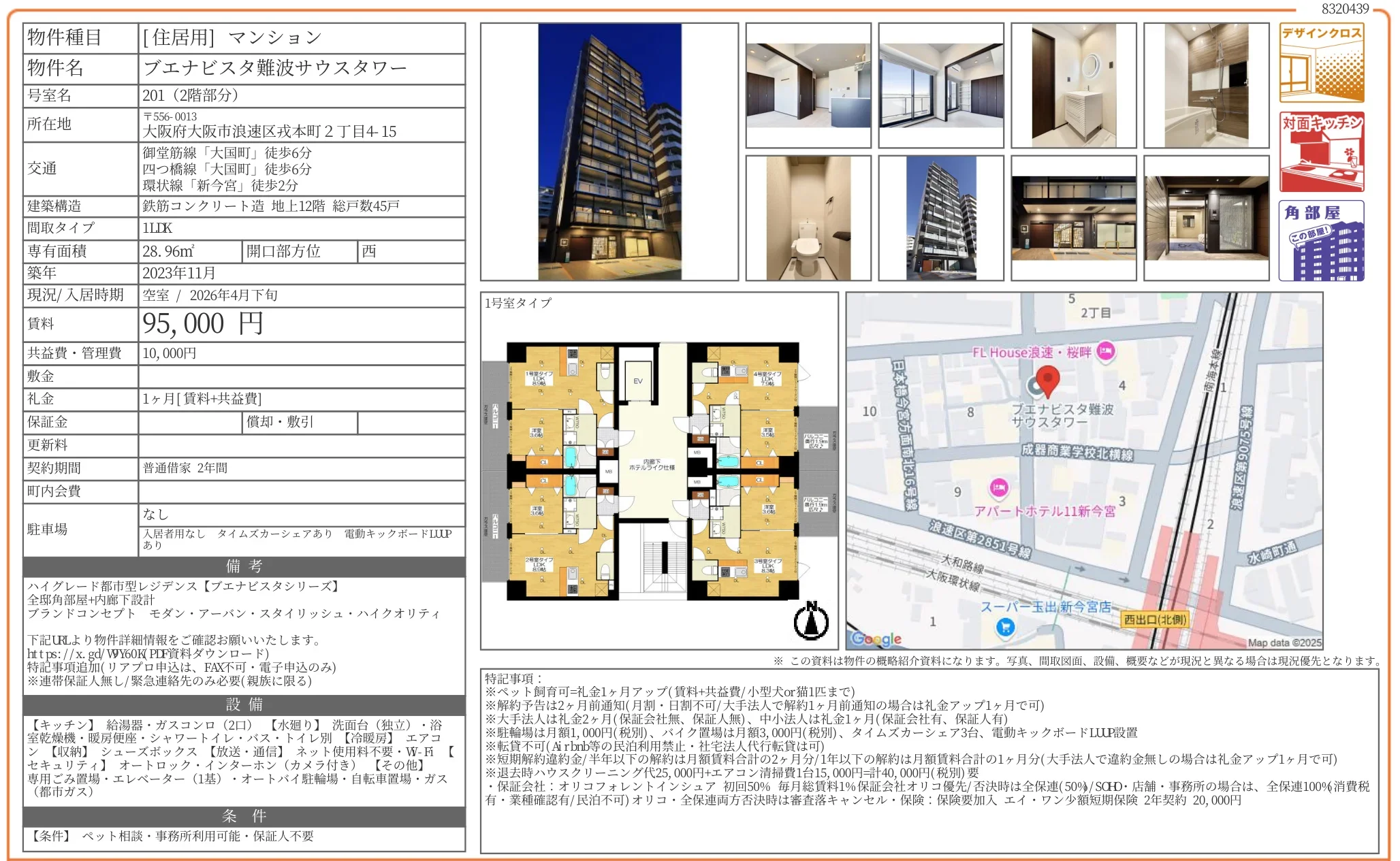 | 物件名 | ブエナビスタ難波サウスタワー 201 |