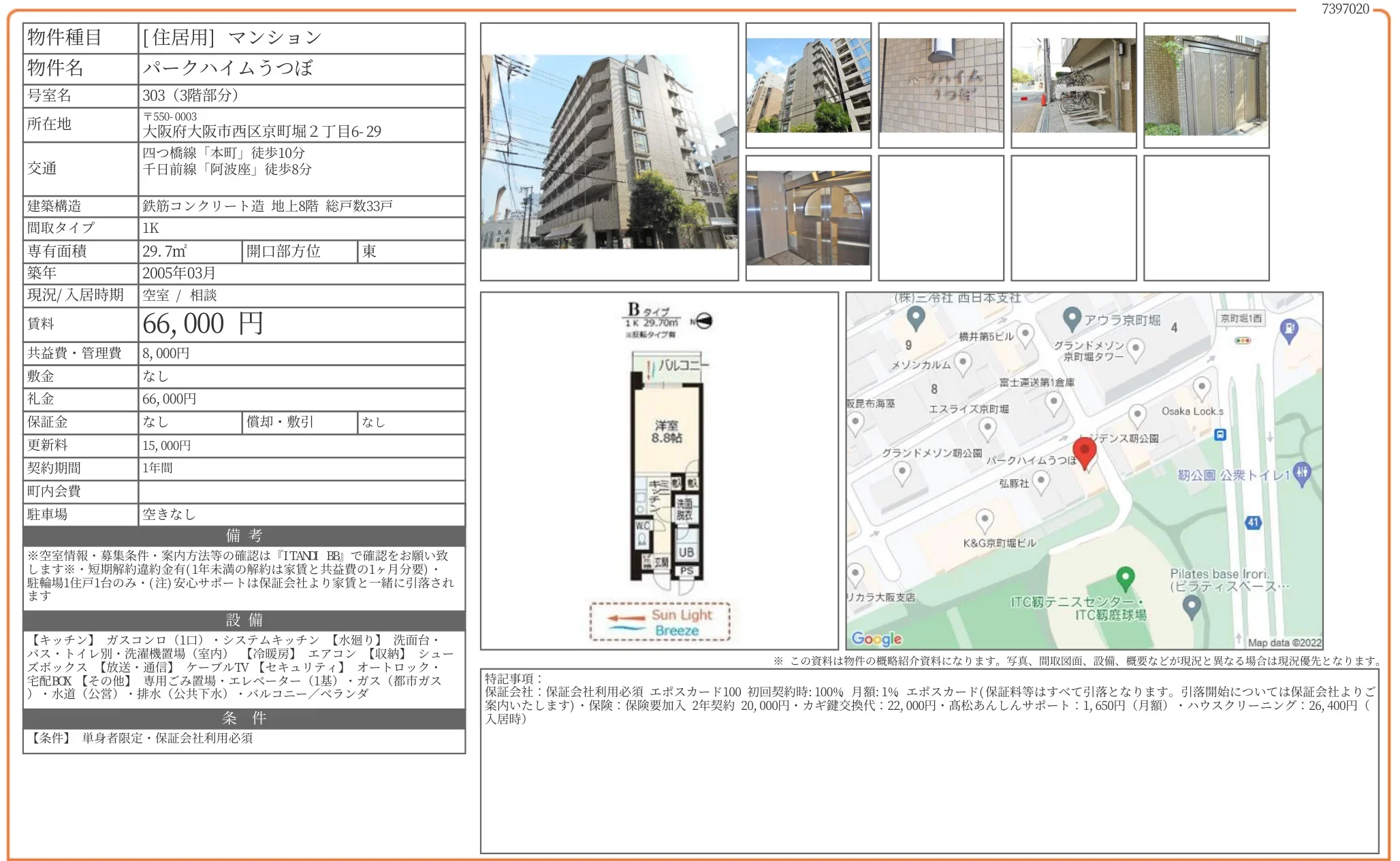 | 物件名 | パークハイムうつぼ 303号 |
