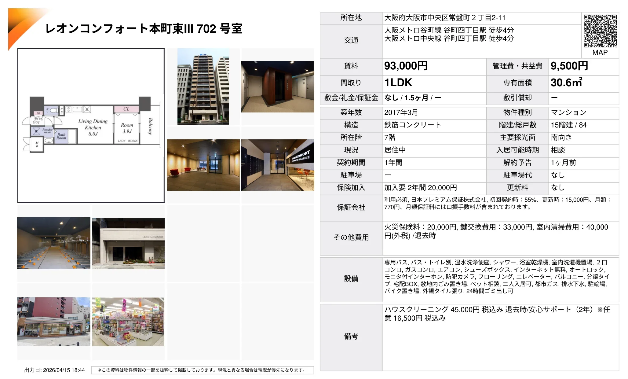| 物件名 | レオンコンフォート本町東川 702号 |