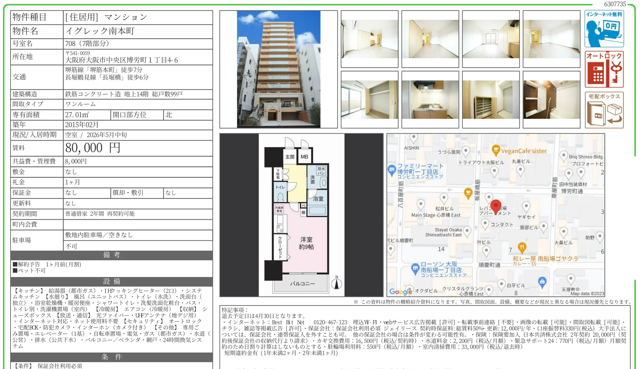 | 物件名 | イグレック南本町 708号 |