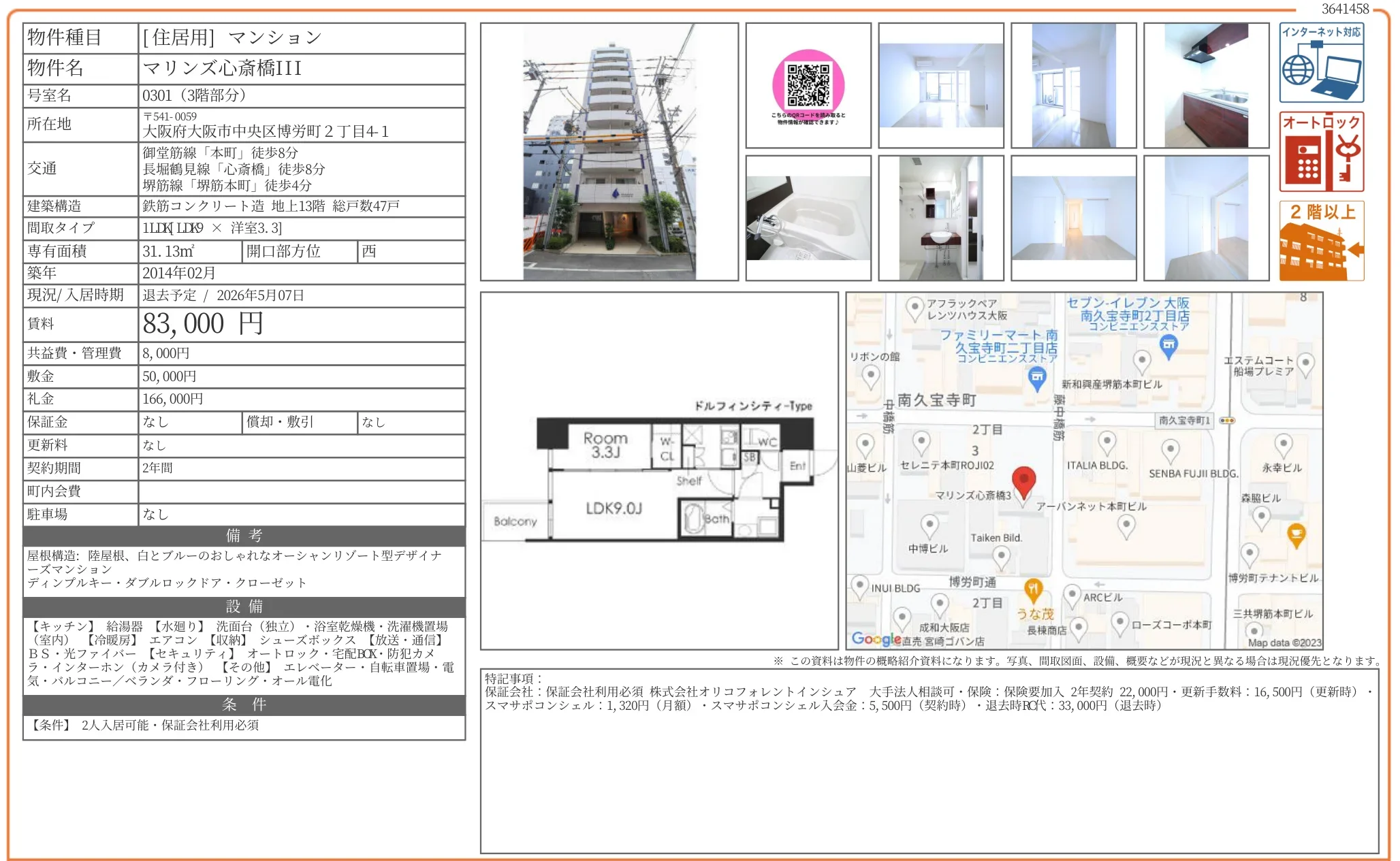 | 物件名 | マリンズ心斎橋III 号室 0301 |