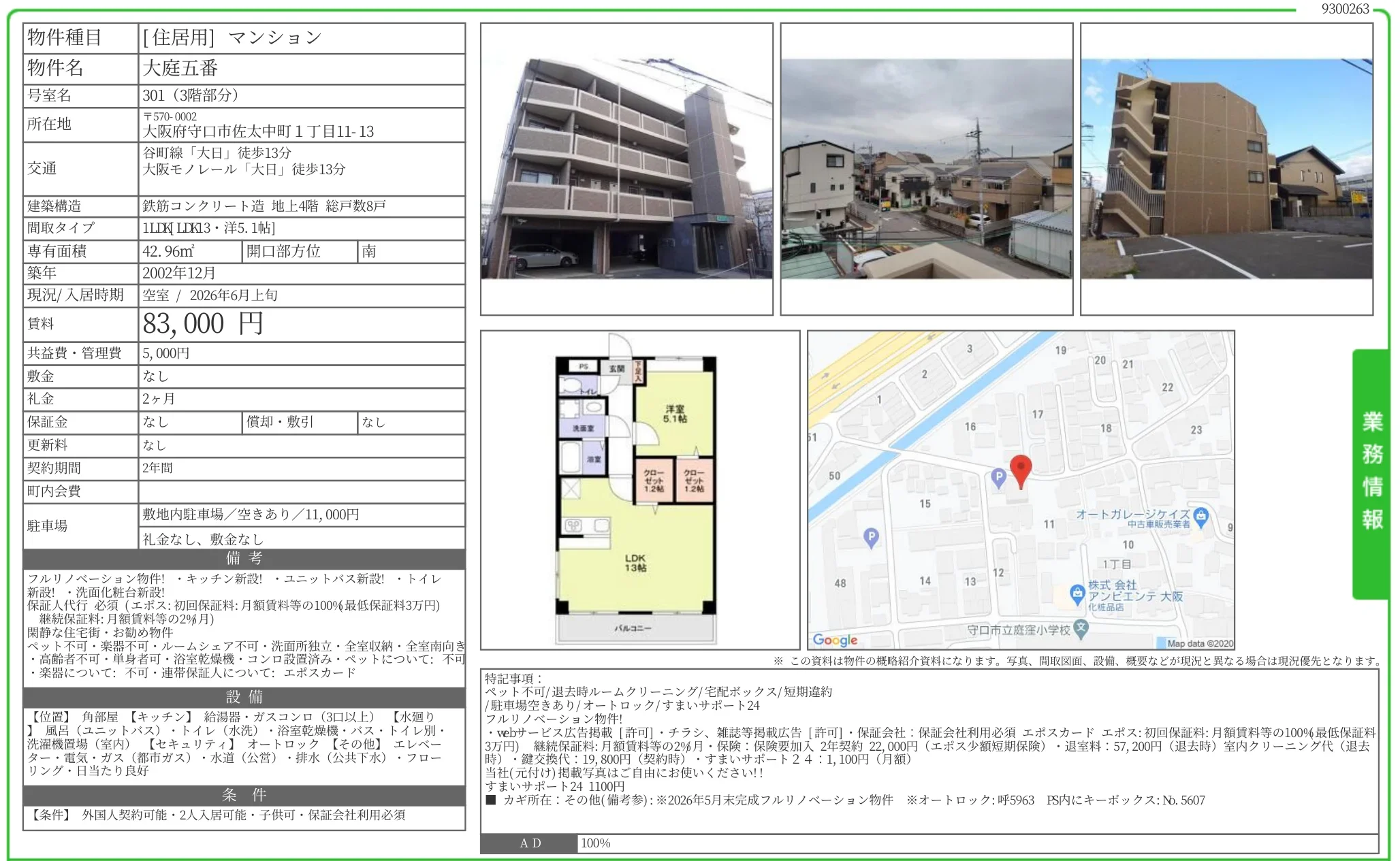 | アクセス | 大日 (徒歩13分) 大日 (徒歩13分) |