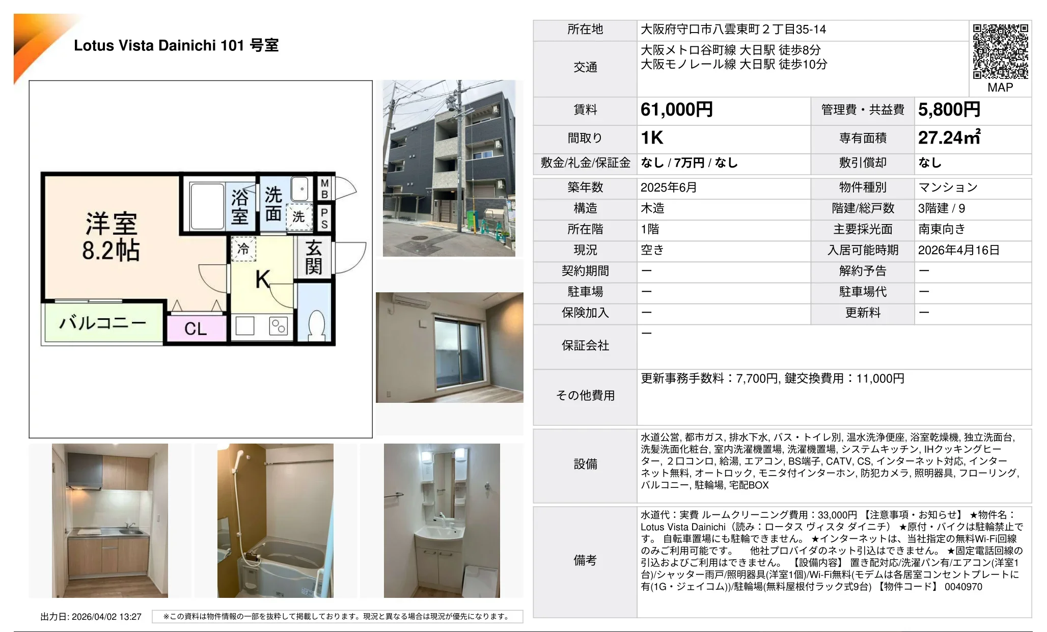 | 物件名 | Lotus Vista Dainichi 101号 |