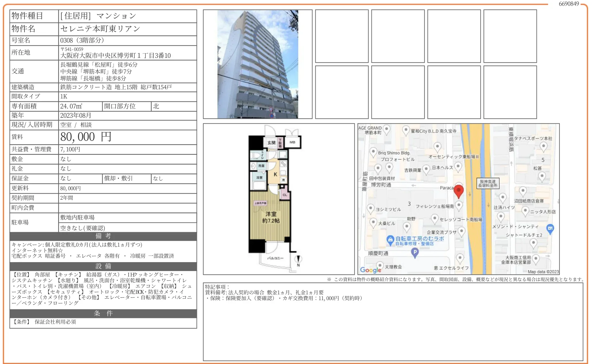 | アクセス | 松屋町 (徒歩6分) 堺筋本町 (徒歩7分) 長堀橋 (徒歩8分) |
