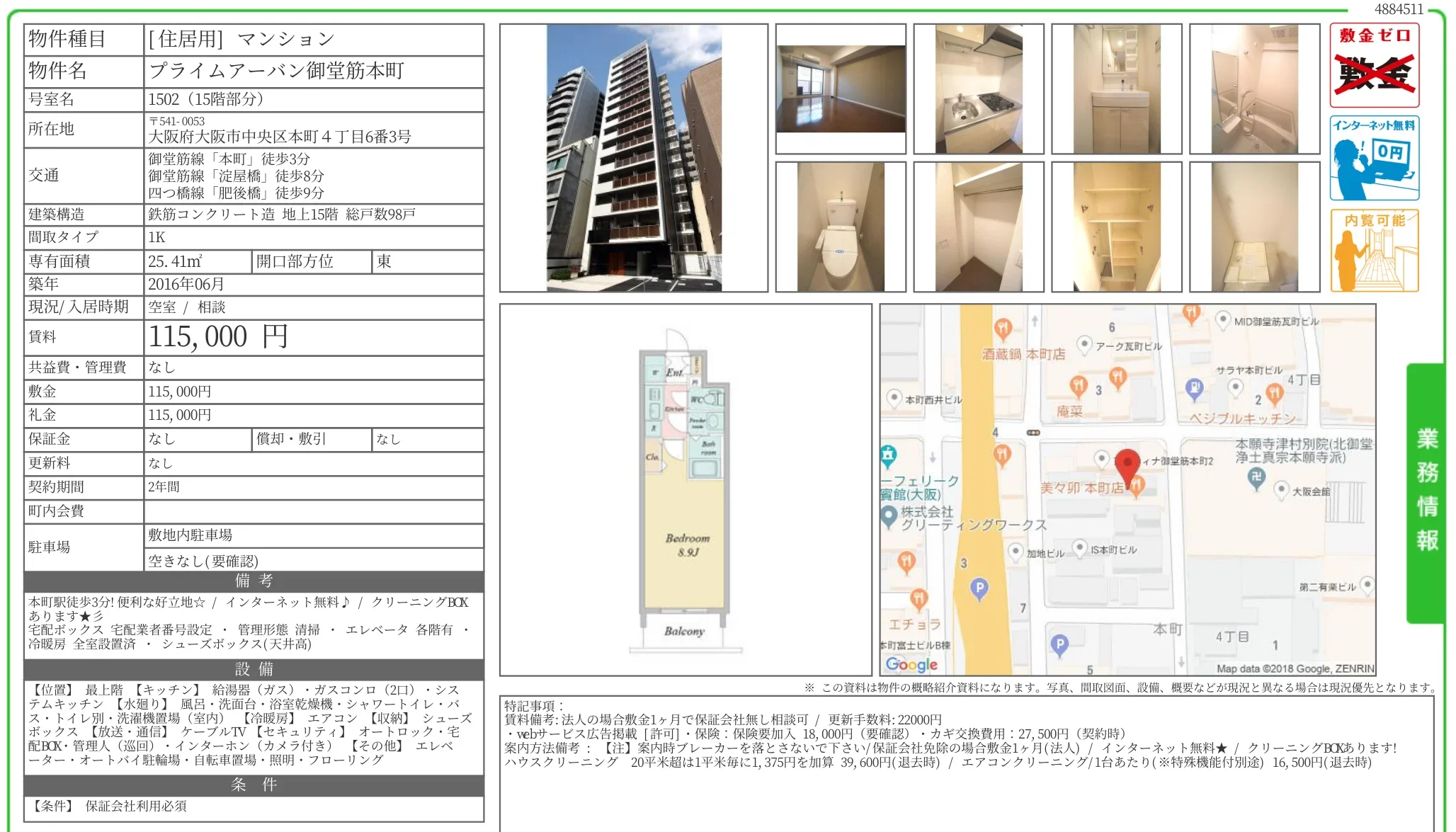 | 物件名 | プライムアーバン御堂筋本町 1502 |