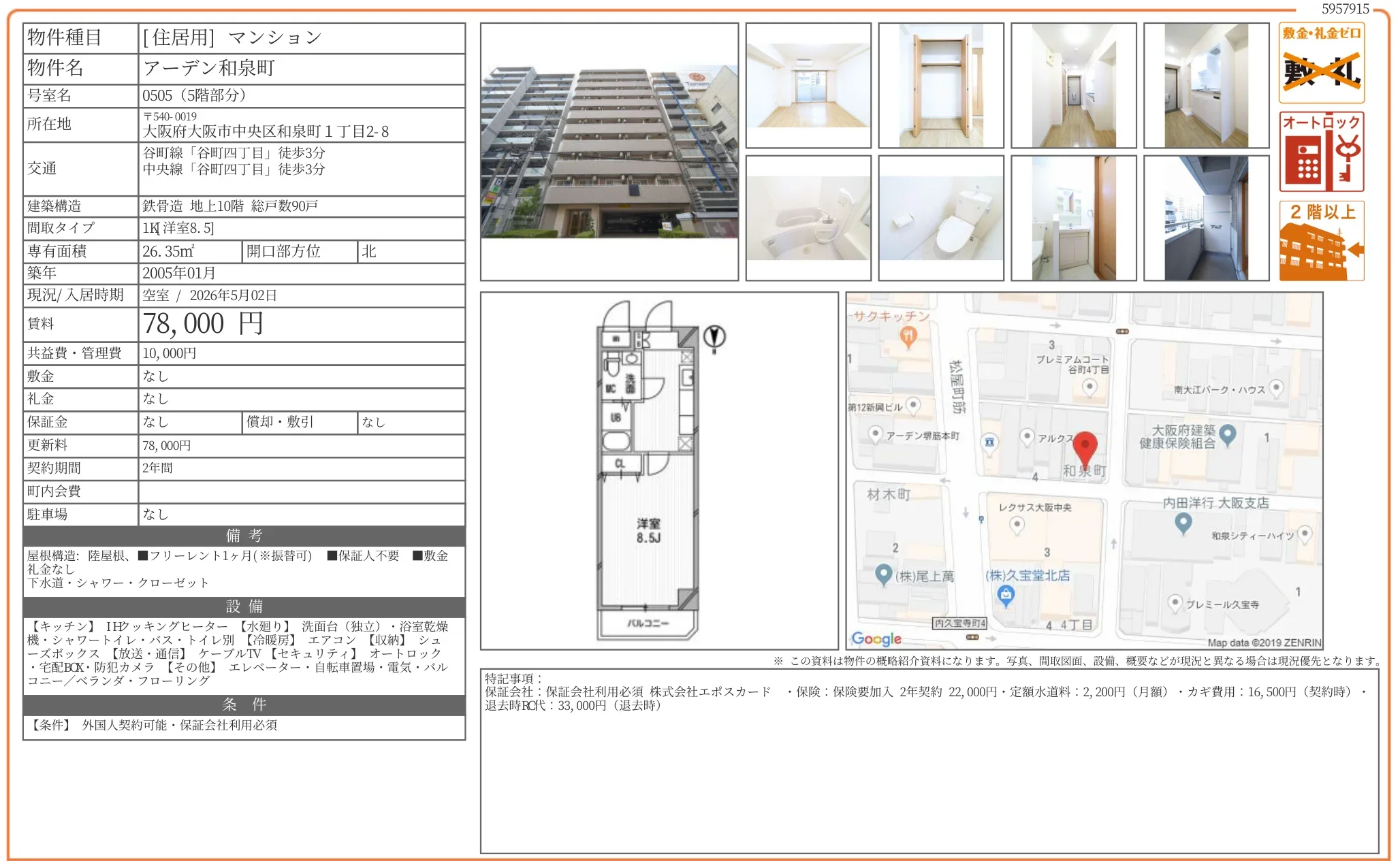 物件名アーデン和泉町 0505