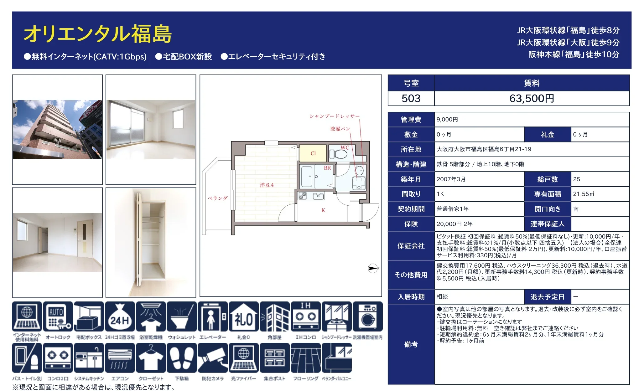 | 物件名 | オリエンタル福島 503 |