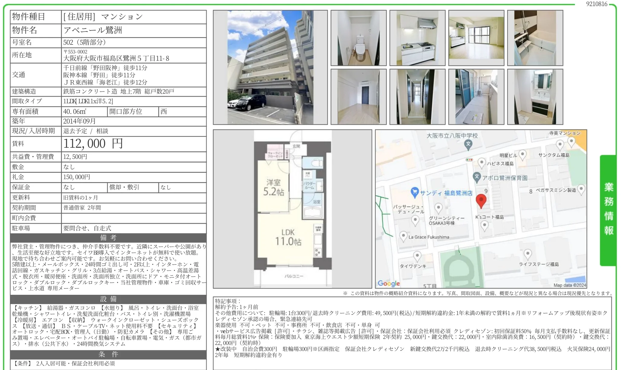 | アクセス | 野田 (徒歩11分) 野田阪神 (徒歩11分) 海老江 (徒歩12分) |