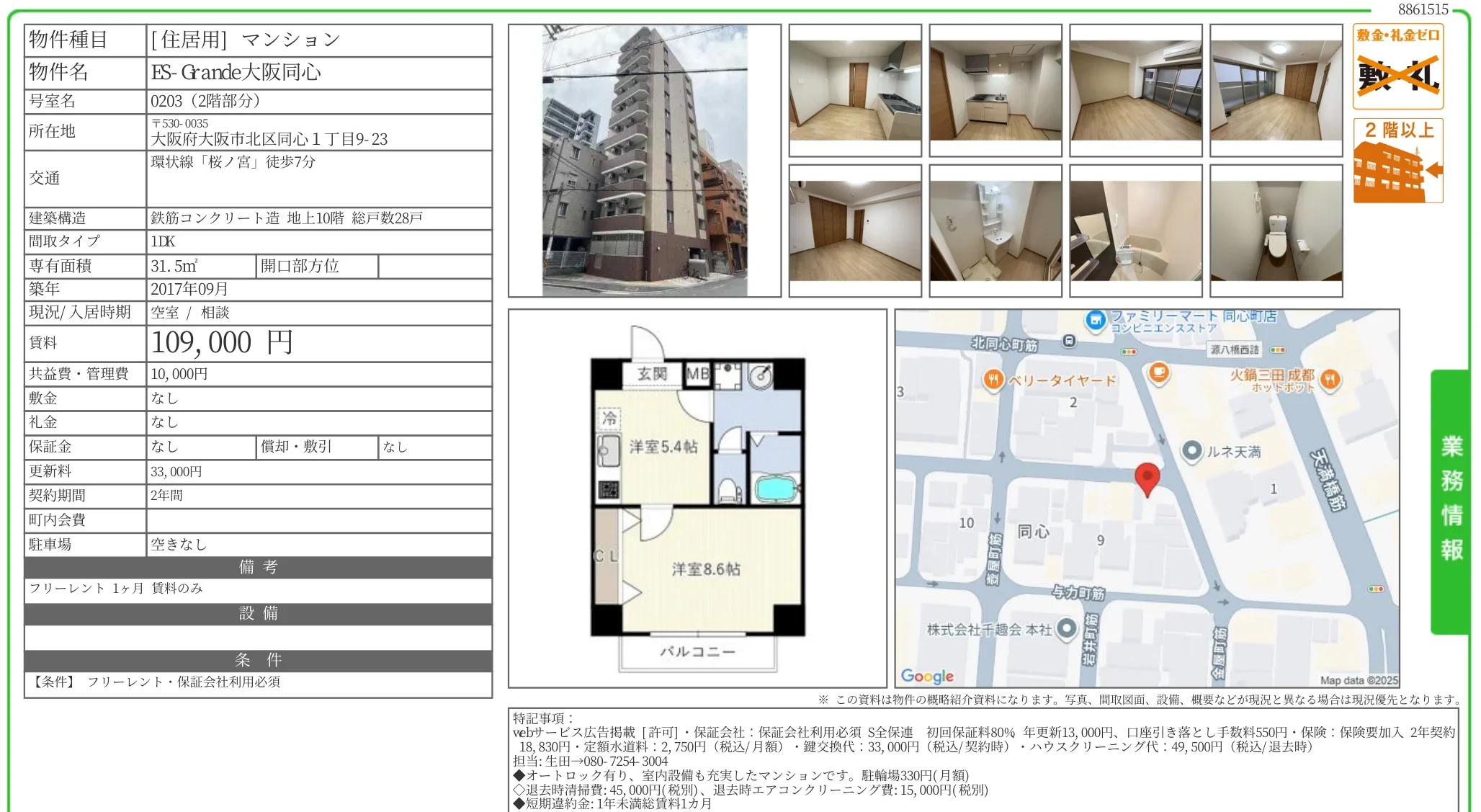 | 物件名 | ES-Grande 大阪同心 0203号 |