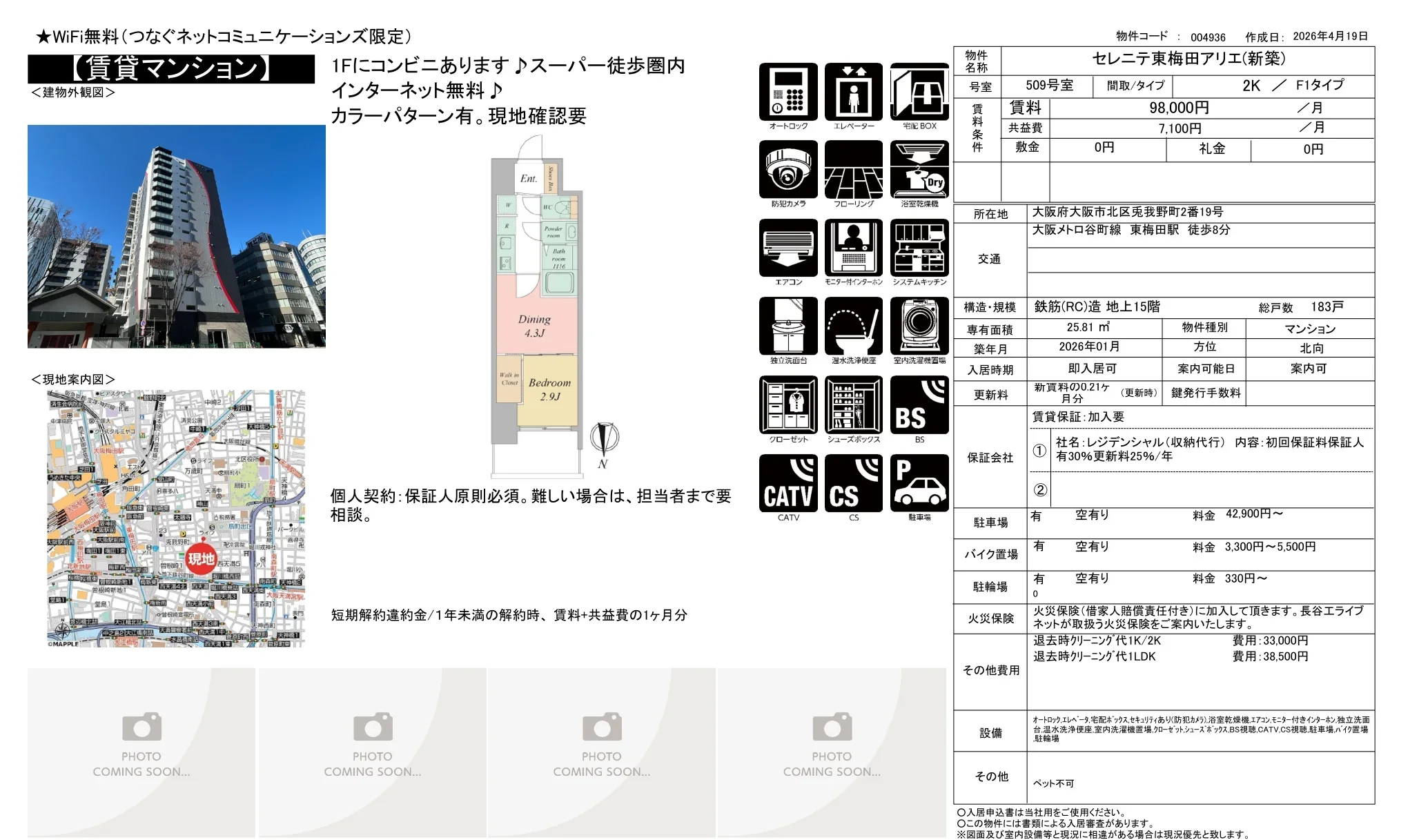 | 物件名 | セレニテ東梅田アリエ 509号 |