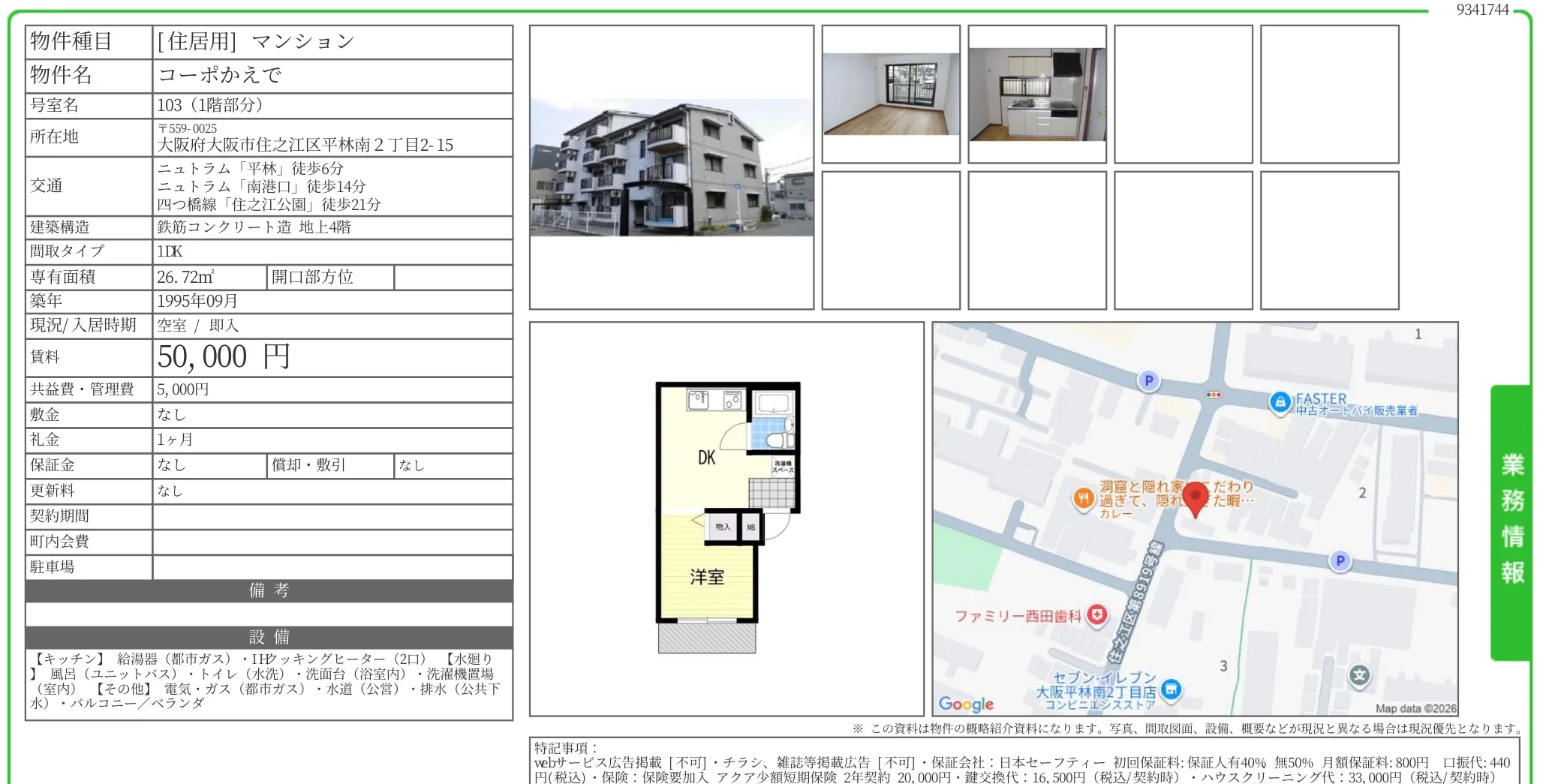| アクセス | 平林 (徒歩6分) 南港口 (徒歩14分) 住之江公園 (徒歩21分) |