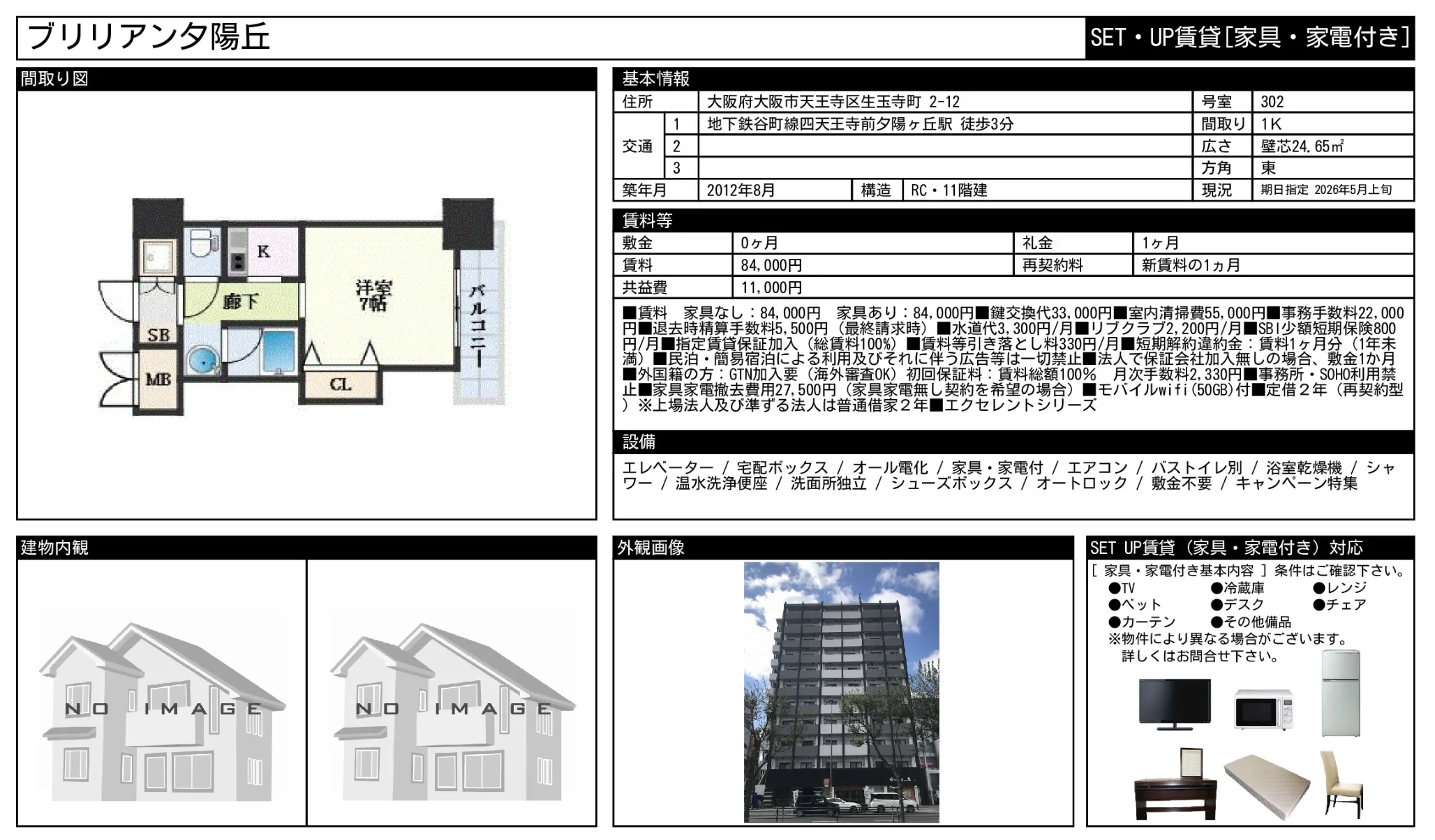 | 物件名 | ブリリアン夕陽丘 302号 |