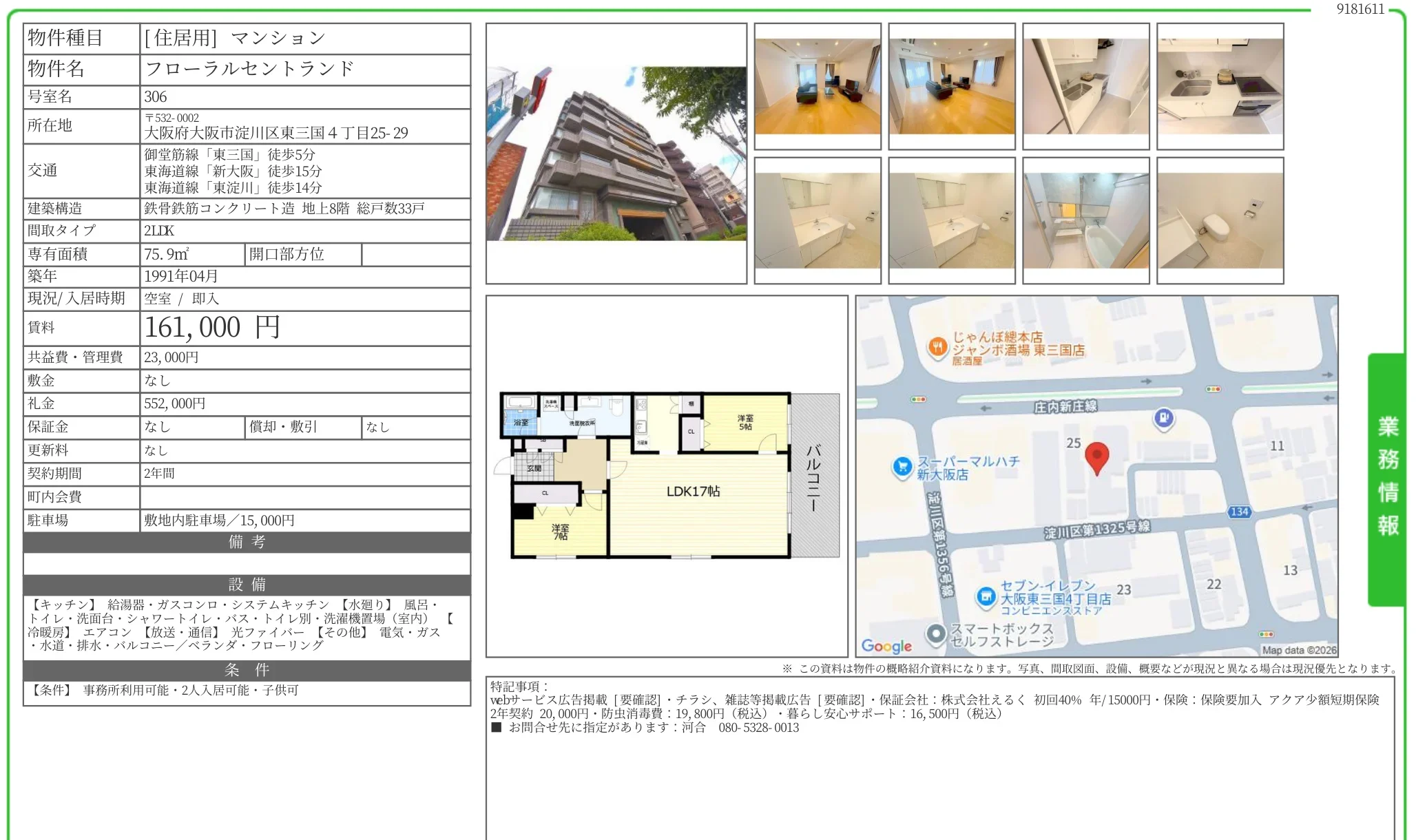 | アクセス | 東三国 (徒歩5分) 新大阪 (徒歩15分) 東淀川 (徒歩14分) |